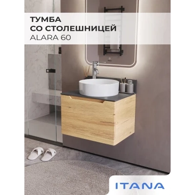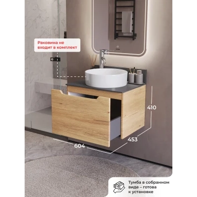 Тумба со столешницей подвесная Итана Alara 60 с выдвижным ящиком Дуб Мавелла Голд