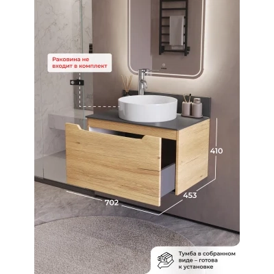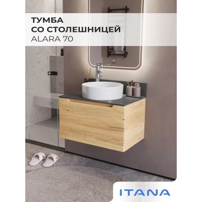 Тумба со столешницей подвесная Итана Alara 70 с выдвижным ящиком Дуб Мавелла Голд