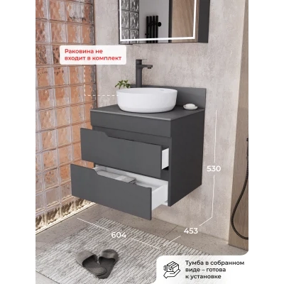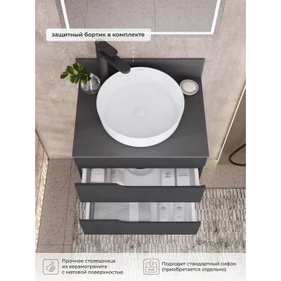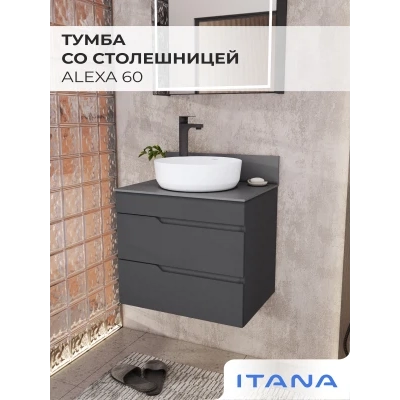 Тумба со столешницей подвесная Итана Alexa 60 с выдвижными ящиками Графит