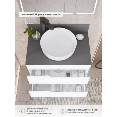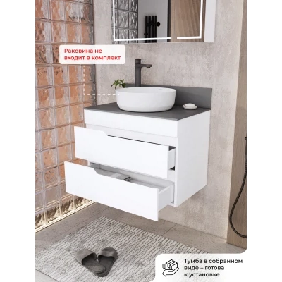 Тумба со столешницей подвесная Итана Alexa 70 с выдвижными ящиками Белый глянец