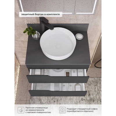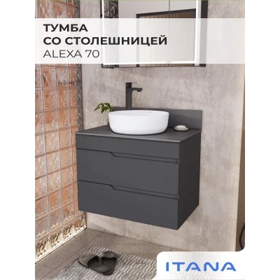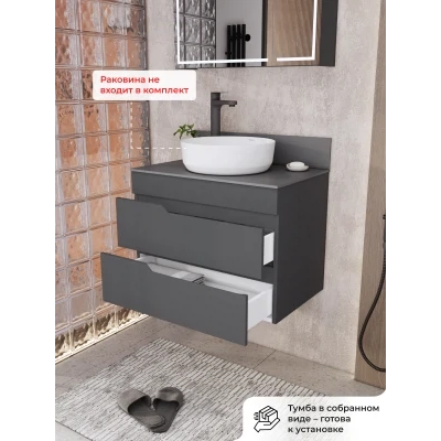 Тумба со столешницей подвесная Итана Alexa 70 с выдвижными ящиками Графит