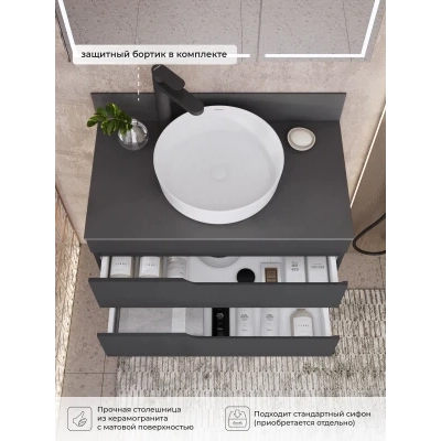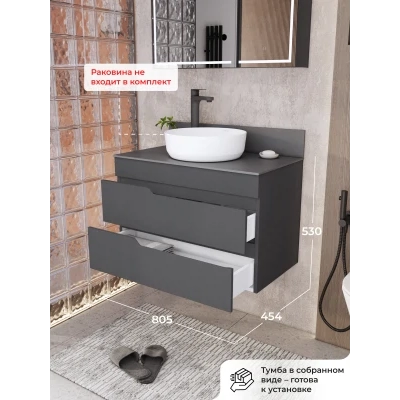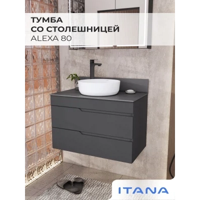 Тумба со столешницей подвесная Итана Alexa 80 с выдвижными ящиками Графит