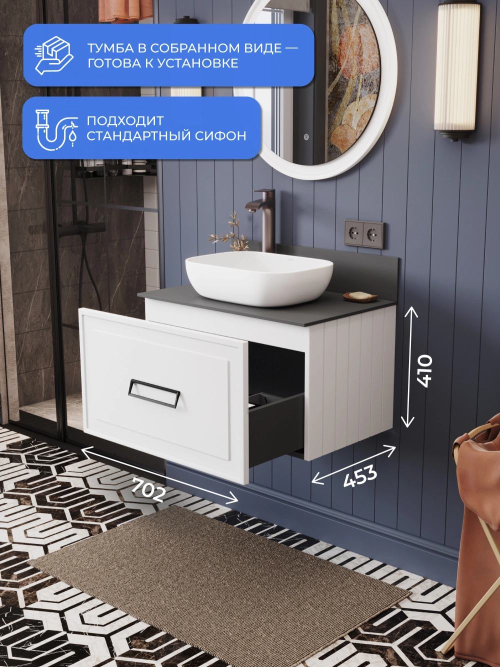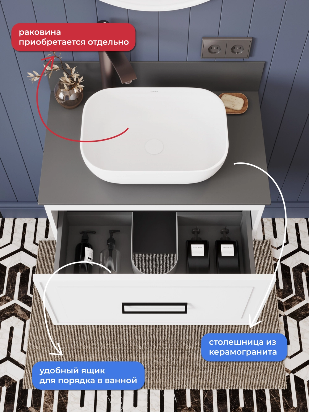 Представляем вашему вниманию стильную подвесную тумбу со столешницей Итана Pino 2.0. Этот аксессуар для ванной комнаты идеально сочетает в себе функциональность и современный дизайн. Размеры тумбы обеспечивают достаточное пространство для хранения необходимых предметов. Благодаря своему лаконичному и компактному дизайну, этот элемент мебели не только делает пространство более стильным, но и помогает эффективно организовать хранение. Она станет отличным решением для тех, кто ценит минимализм и удобство. Подвесная тумба обеспечивает легкость уборки под ней и визуально увеличивает пространство. Изготавливается из качественных материалов, что гарантирует долговечность и износостойкость. Конструкция предполагает простоту монтажа и эксплуатации. Тумба обязательно дополнит вашу ванную, сделает её более уютной и функциональной.