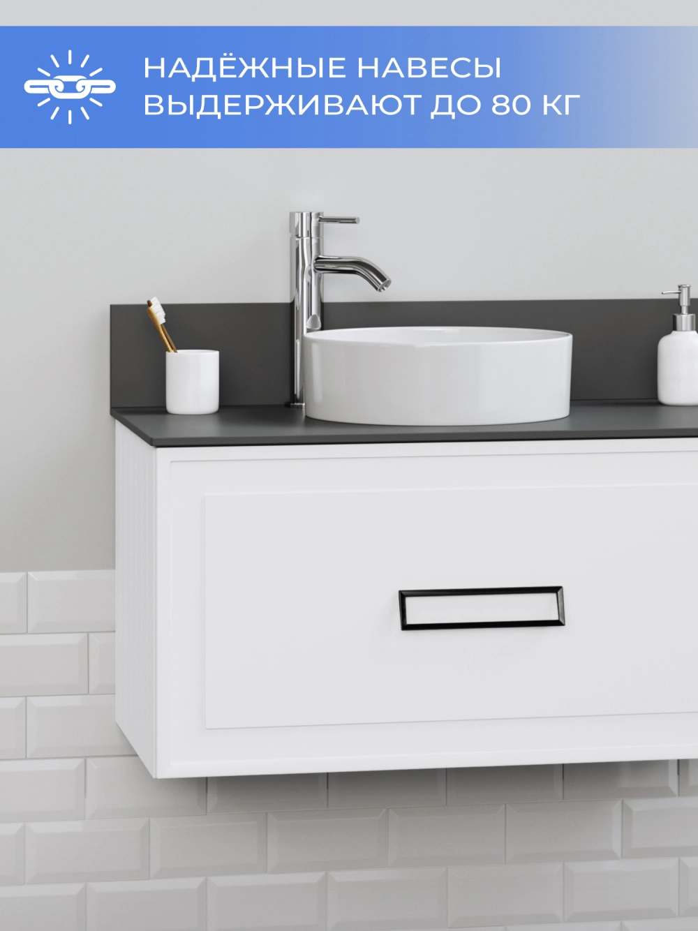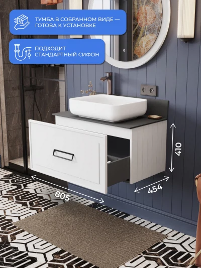 Тумба со столешницей подвесная Итана Pino 2.0 80 с выдвижным ящиком Бланж