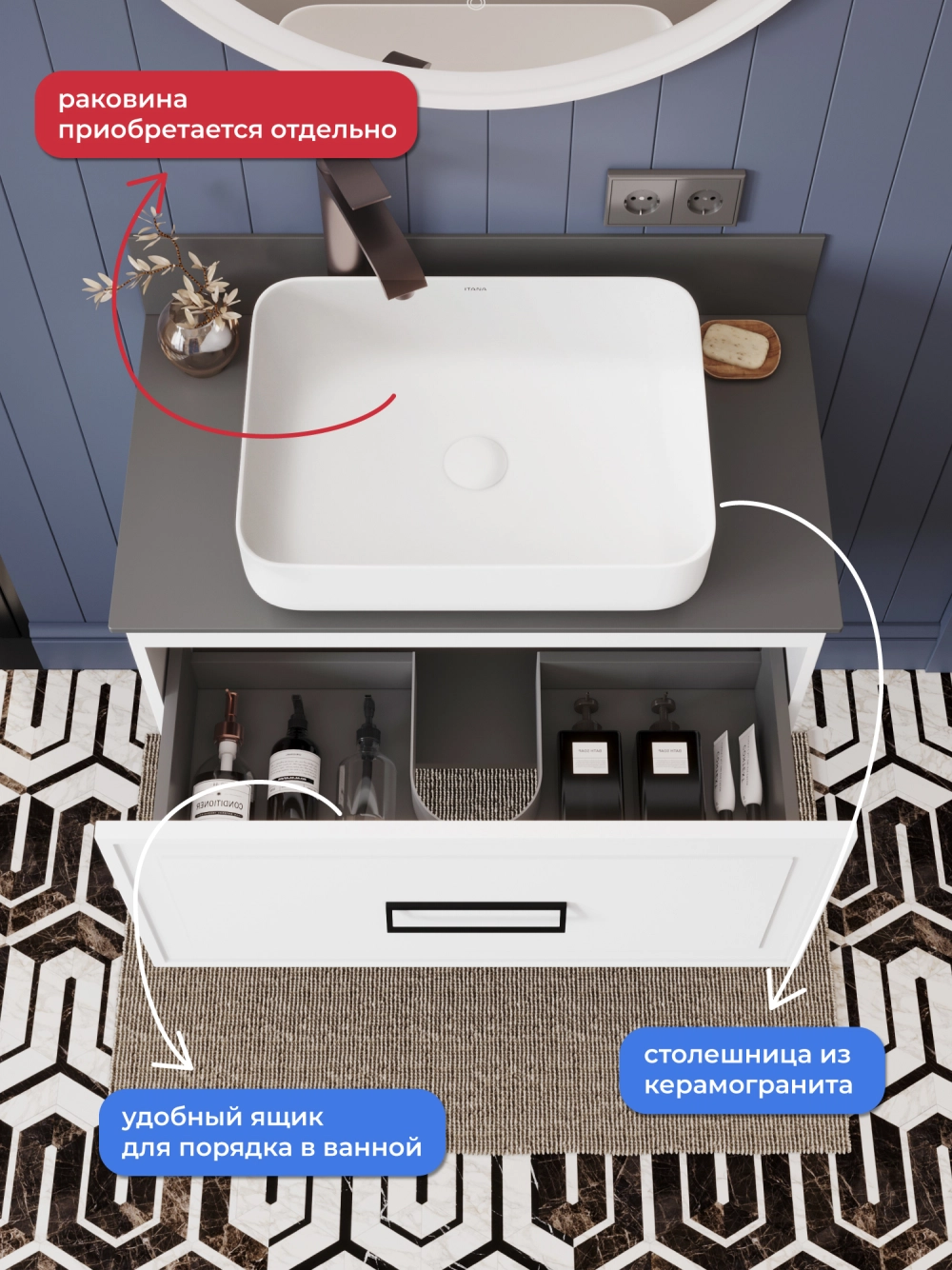Представляем вашему вниманию стильную подвесную тумбу со столешницей Итана Pino 2.0. Этот аксессуар для ванной комнаты идеально сочетает в себе функциональность и современный дизайн. Размеры тумбы обеспечивают достаточное пространство для хранения необходимых предметов. Благодаря своему лаконичному и компактному дизайну, этот элемент мебели не только делает пространство более стильным, но и помогает эффективно организовать хранение. Она станет отличным решением для тех, кто ценит минимализм и удобство. Подвесная тумба обеспечивает легкость уборки под ней и визуально увеличивает пространство. Изготавливается из качественных материалов, что гарантирует долговечность и износостойкость. Конструкция предполагает простоту монтажа и эксплуатации. Тумба обязательно дополнит вашу ванную, сделает её более уютной и функциональной.