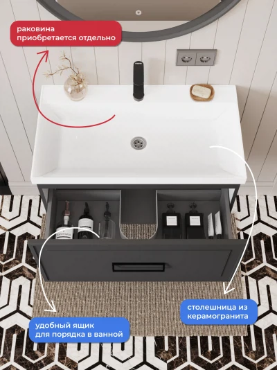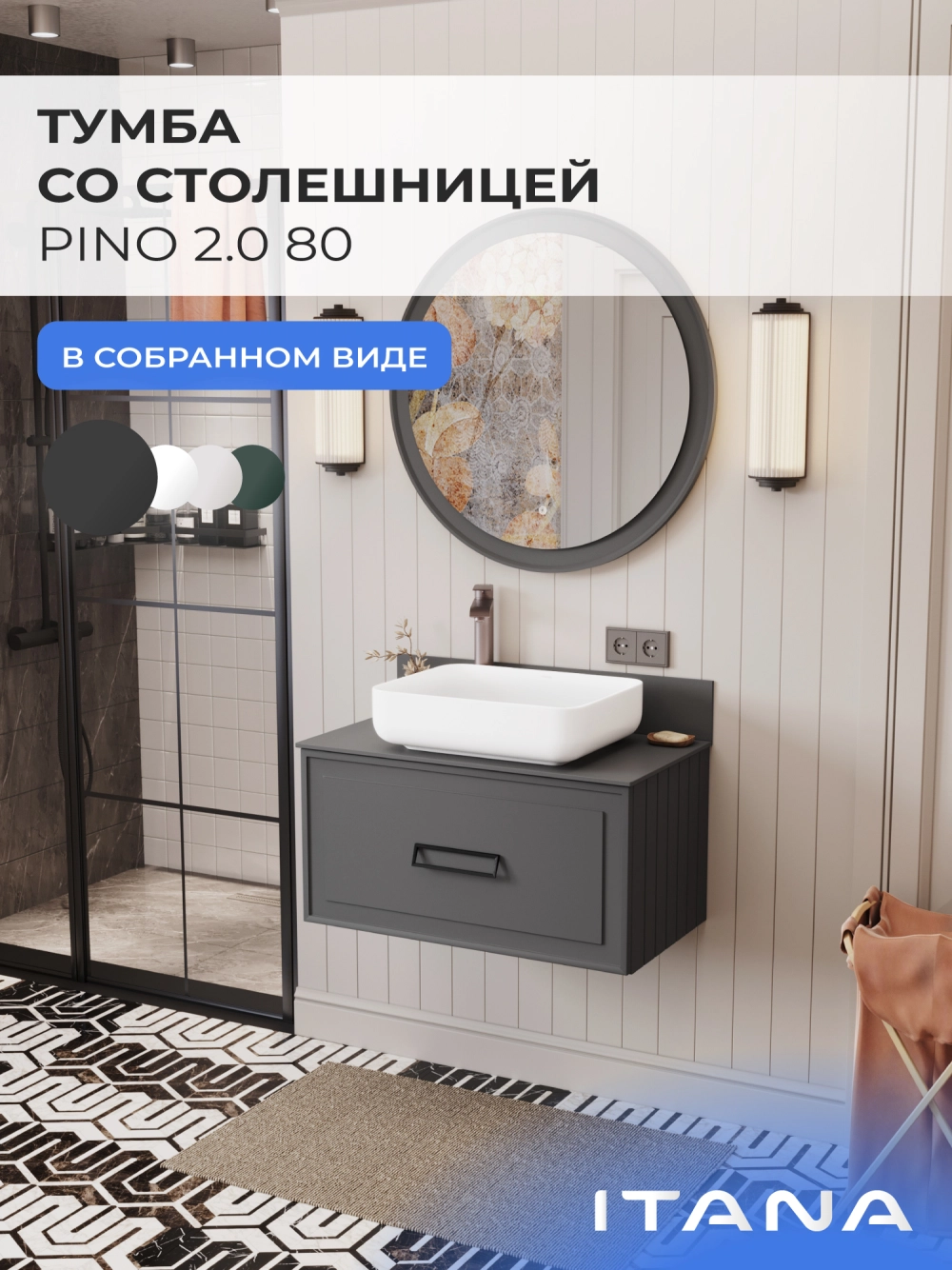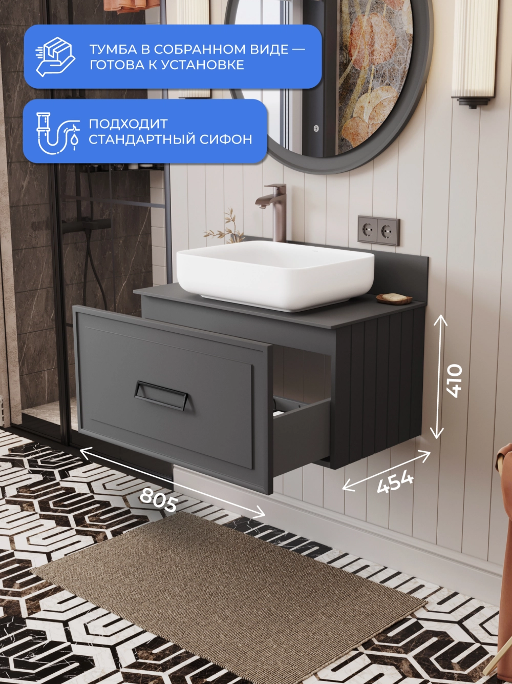 Тумба со столешницей подвесная Итана Pino 2.0 80 с выдвижным ящиком Графит