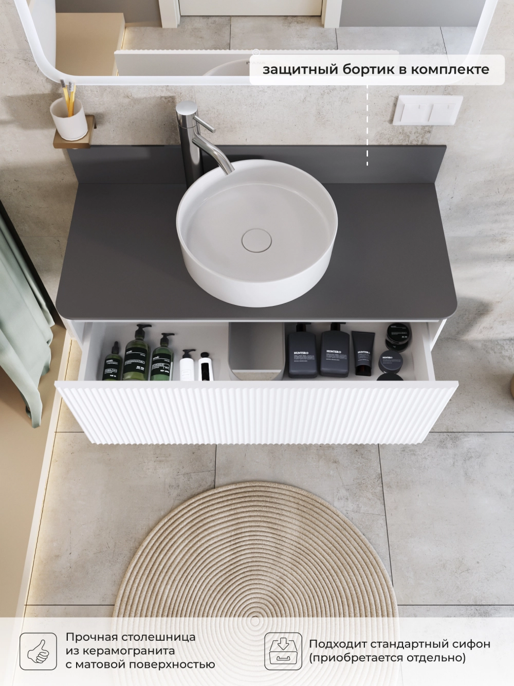 Представляем вашему вниманию стильную подвесную тумбу со столешницей Итана Pronto, выполненную в цвете Бланж. Этот аксессуар для ванной комнаты идеально сочетает в себе функциональность и современный дизайн. Размеры тумбы обеспечивают достаточное пространство для хранения необходимых предметов. Благодаря своему лаконичному и компактному дизайну, этот элемент мебели не только делает пространство более стильным, но и помогает эффективно организовать хранение. Она станет отличным решением для тех, кто ценит минимализм и удобство. Подвесная тумба обеспечивает легкость уборки под ней и визуально увеличивает пространство. Изготавливается из качественных материалов, что гарантирует долговечность и износостойкость. Конструкция предполагает простоту монтажа и эксплуатации. Тумба обязательно дополнит вашу ванную, сделает её более уютной и функциональной.