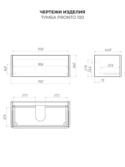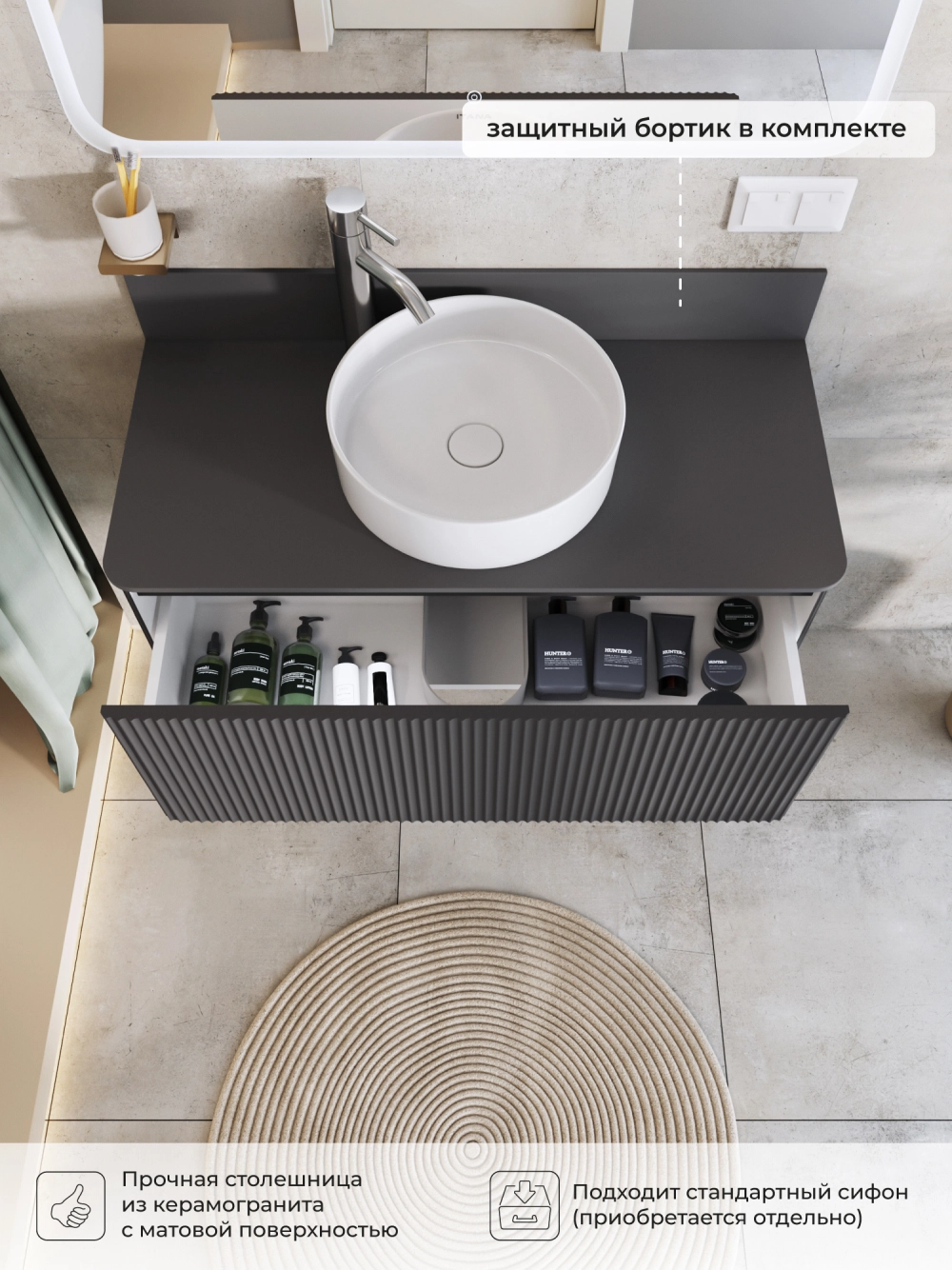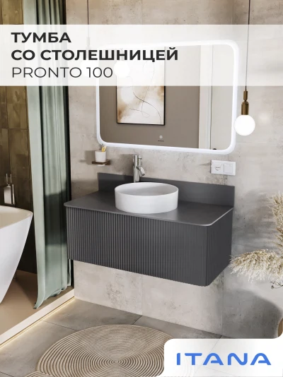 Тумба со столешницей подвесная Итана Pronto 100 с выдвижным ящиком Графит