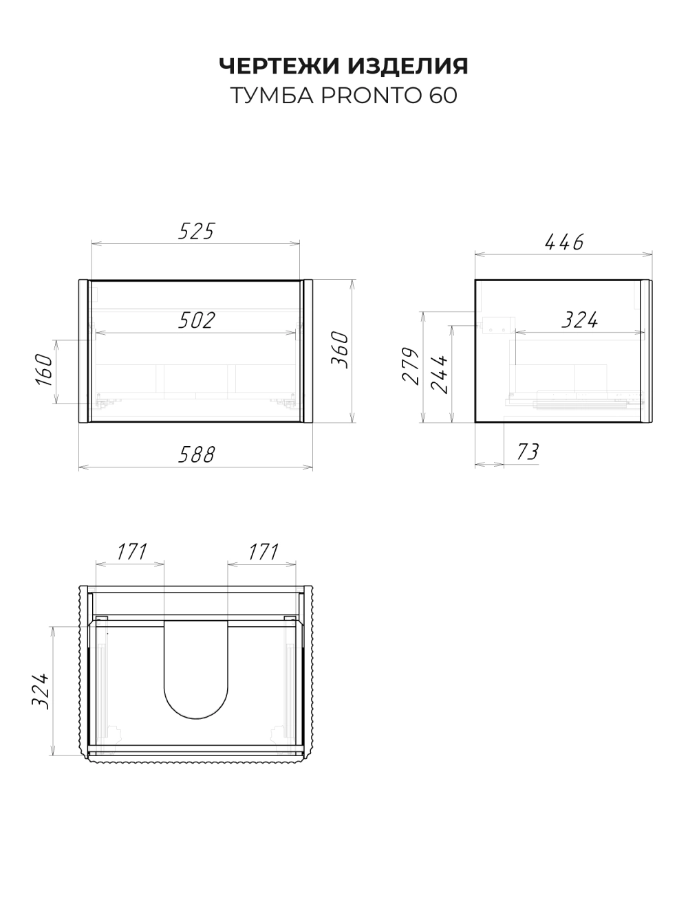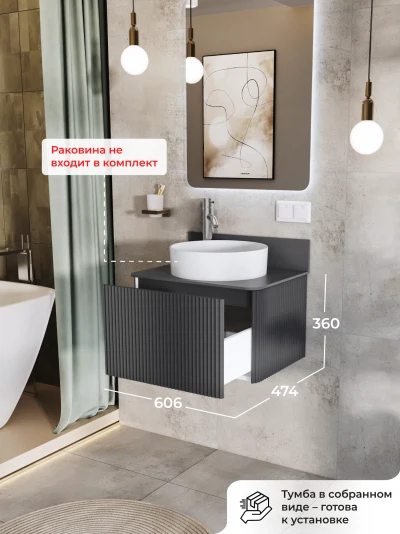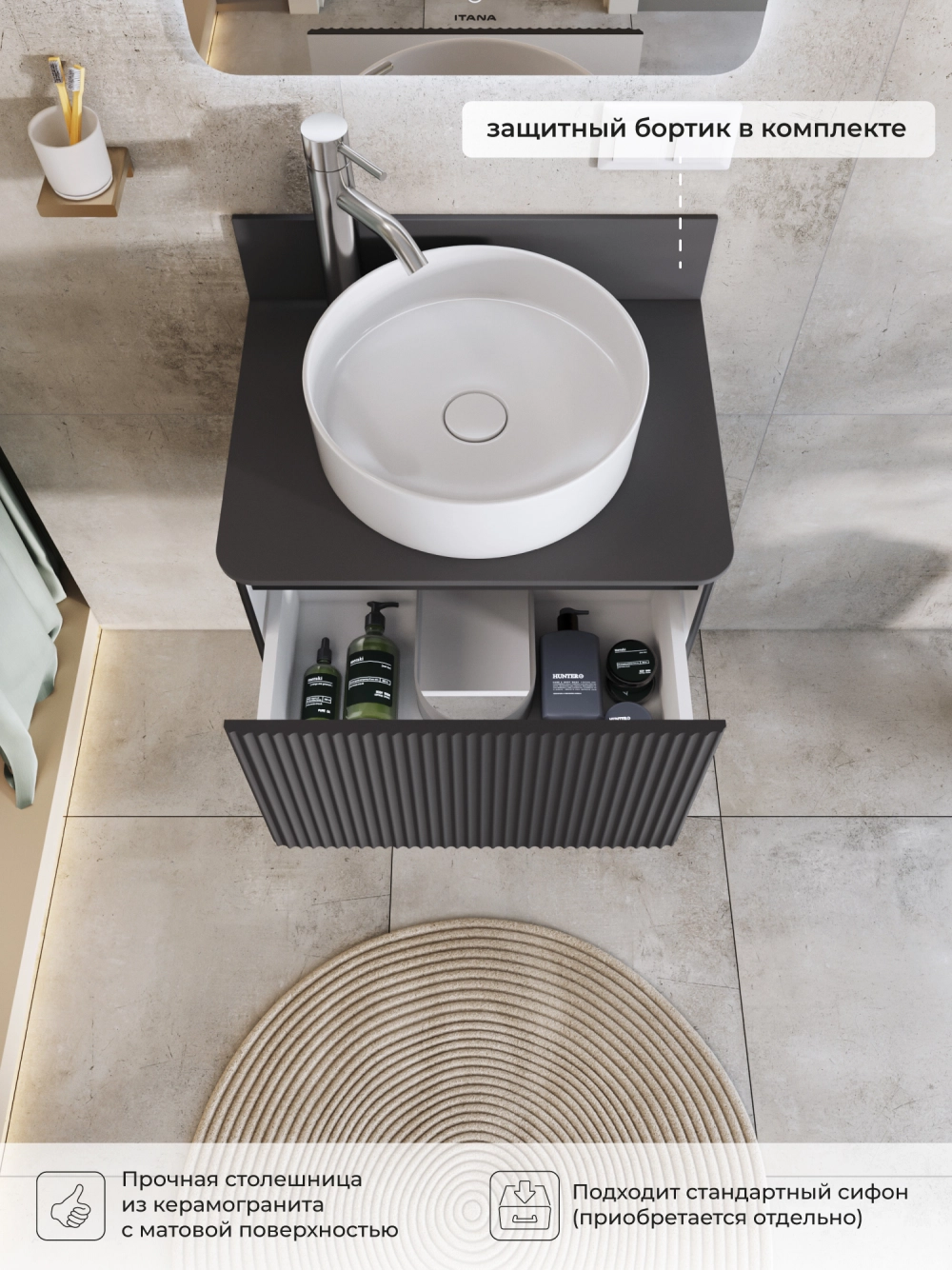 Тумба со столешницей подвесная Итана Pronto 60 с выдвижным ящиком Графит