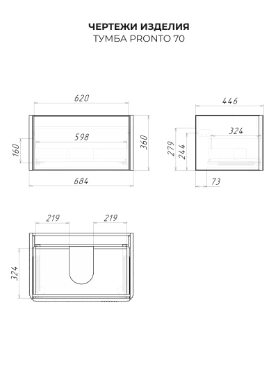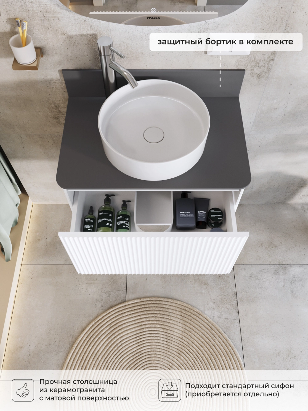 Тумба со столешницей подвесная Итана Pronto 70 с выдвижным ящиком Бланж