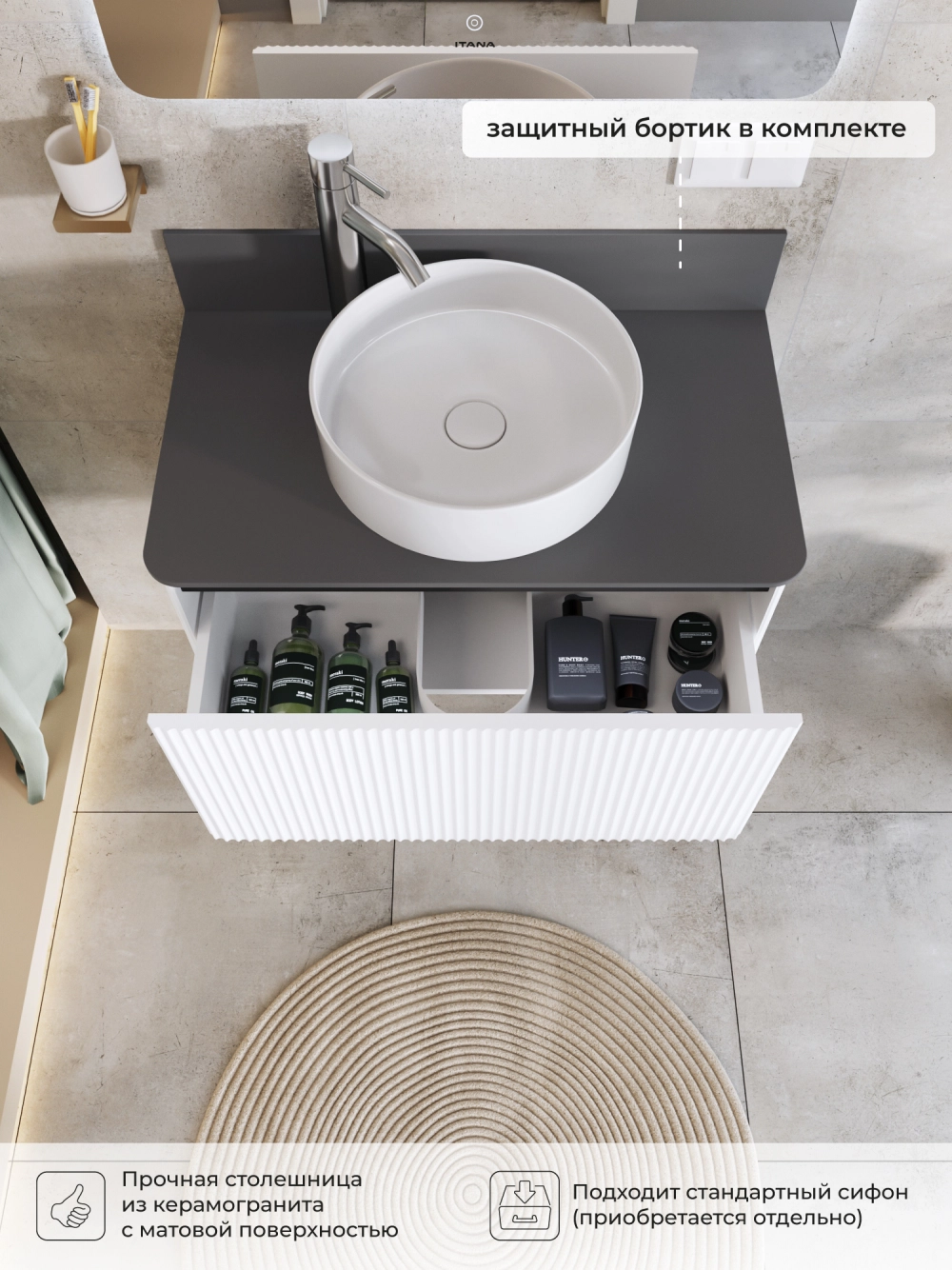 Тумба со столешницей подвесная Итана Pronto 80 с выдвижным ящиком Бланж