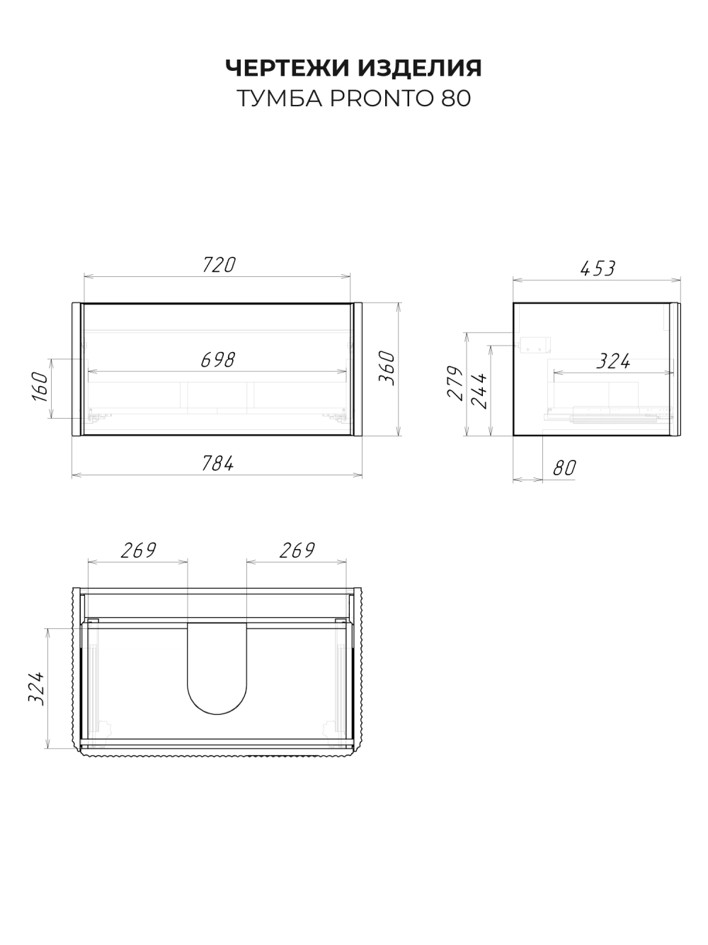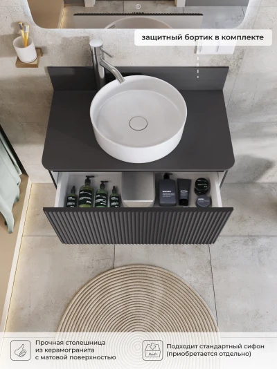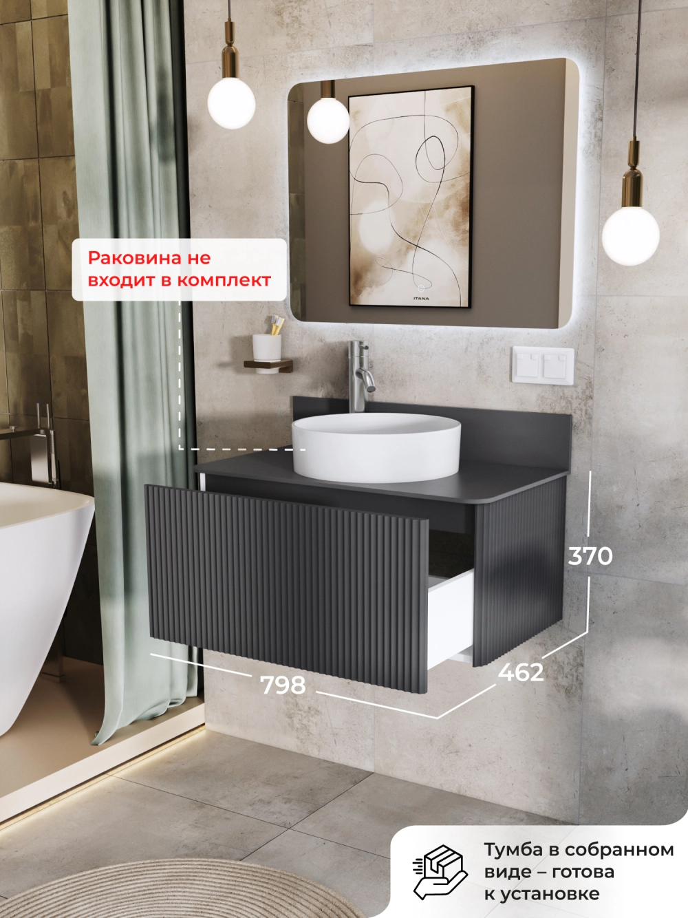 Тумба со столешницей подвесная Итана Pronto 80 с выдвижным ящиком Графит