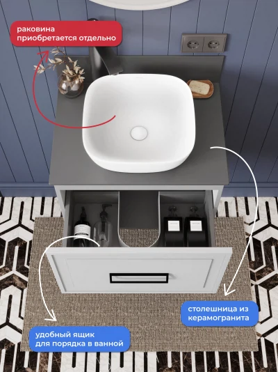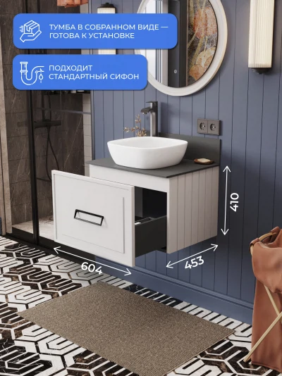 Тумба со столешницей подвесная Итана Rey 60 с выдвижным ящиком Керамик