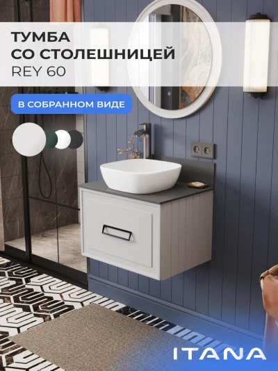 Представляем вашему вниманию стильную подвесную тумбу со столешницей Итана Rey. Этот аксессуар для ванной комнаты идеально сочетает в себе функциональность и современный дизайн. Размеры тумбы обеспечивают достаточное пространство для хранения необходимых предметов.<br>Благодаря своему лаконичному и компактному дизайну, этот элемент мебели не только делает пространство более стильным, но и помогает эффективно организовать хранение. Она станет отличным решением для тех, кто ценит минимализм и удобство. Подвесная тумба обеспечивает легкость уборки под ней и визуально увеличивает пространство. Изготавливается из качественных материалов, что гарантирует долговечность и износостойкость. Конструкция предполагает простоту монтажа и эксплуатации. Тумба обязательно дополнит вашу ванную, сделает её более уютной и функциональной.