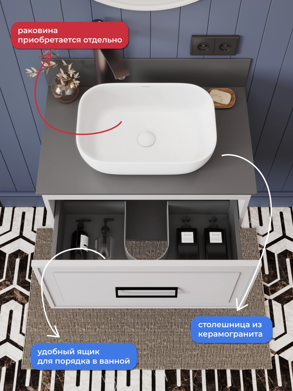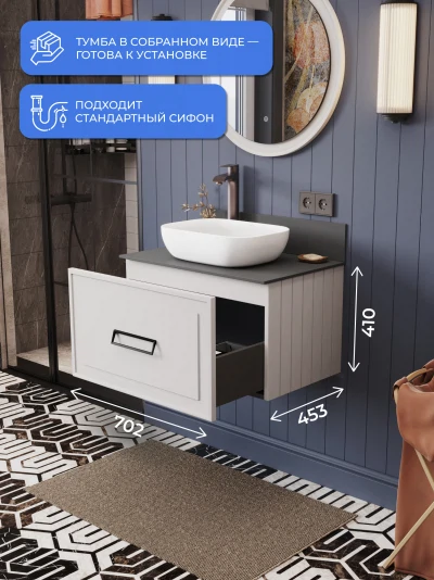 Тумба со столешницей подвесная Итана Rey 70 с выдвижным ящиком Керамик