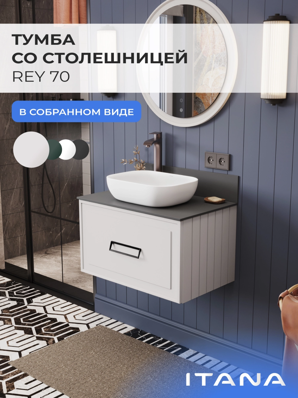 Представляем вашему вниманию стильную подвесную тумбу со столешницей Итана Rey. Этот аксессуар для ванной комнаты идеально сочетает в себе функциональность и современный дизайн. Размеры тумбы обеспечивают достаточное пространство для хранения необходимых предметов.<br>Благодаря своему лаконичному и компактному дизайну, этот элемент мебели не только делает пространство более стильным, но и помогает эффективно организовать хранение. Она станет отличным решением для тех, кто ценит минимализм и удобство. Подвесная тумба обеспечивает легкость уборки под ней и визуально увеличивает пространство. Изготавливается из качественных материалов, что гарантирует долговечность и износостойкость. Конструкция предполагает простоту монтажа и эксплуатации. Тумба обязательно дополнит вашу ванную, сделает её более уютной и функциональной.