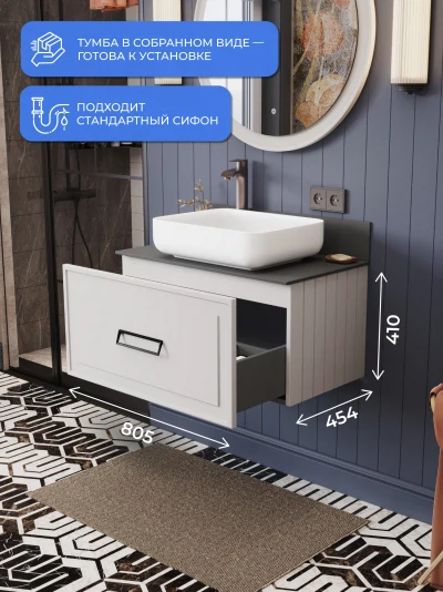 Тумба со столешницей подвесная Итана Rey 80 с выдвижным ящиком Керамик