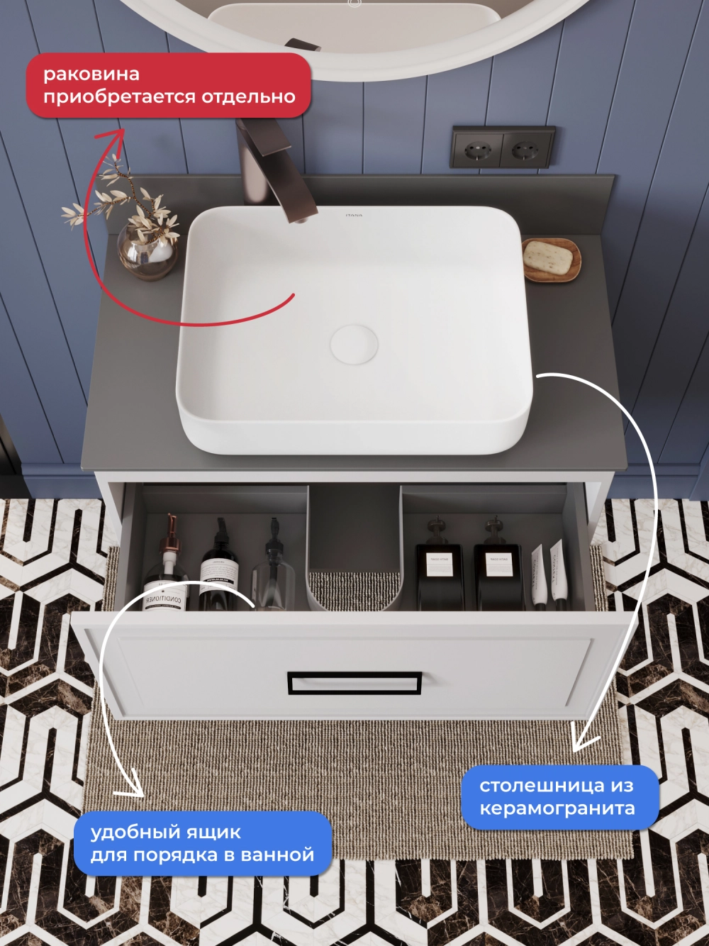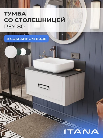 Представляем вашему вниманию стильную подвесную тумбу со столешницей Итана Rey. Этот аксессуар для ванной комнаты идеально сочетает в себе функциональность и современный дизайн. Размеры тумбы обеспечивают достаточное пространство для хранения необходимых предметов.<br>Благодаря своему лаконичному и компактному дизайну, этот элемент мебели не только делает пространство более стильным, но и помогает эффективно организовать хранение. Она станет отличным решением для тех, кто ценит минимализм и удобство. Подвесная тумба обеспечивает легкость уборки под ней и визуально увеличивает пространство. Изготавливается из качественных материалов, что гарантирует долговечность и износостойкость. Конструкция предполагает простоту монтажа и эксплуатации. Тумба обязательно дополнит вашу ванную, сделает её более уютной и функциональной.