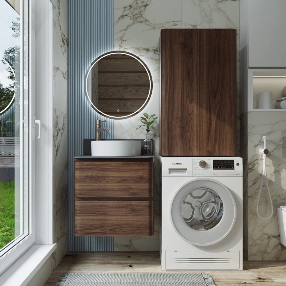 Подвесная тумба со столешницей в ванную из коллекции Roberto - это сочетание современной стилистики и богатого функционала. Тумба для ванны изготовлена из прочного МДФ, поэтому выдерживает высокие эксплуатационные нагрузки и обеспечивает дополнительную защиту тумбы со столешницей от влаги и перепадов температуры. Качественная фурнитура с доводчиками обеспечивает легкое открывание и плавное закрывание ящиков. Вырез под сифон универсальный, для любого типа. Благодаря своей конструкции тумба обеспечивает удобный доступ к раковине и позволяет скрыть коммуникации. Тумба со столешницей в ванную оснащена двумя удобными ящиками для хранения, что позволяет разместить всё необходимое под рукой. Ручки интегрированы в фасад, что исключает возможность случайного удара о фурнитуру. Для точного выбора тумбы со столешницей в ванную комнату рекомендуем обратиться к схеме замеров, которая находится на фото в карточке товара, размеры изделия могут отличаться +/-1 см в связи со спецификой производства. Тумба для ванной доставляется в предварительно собранном виде, надежно упакована.