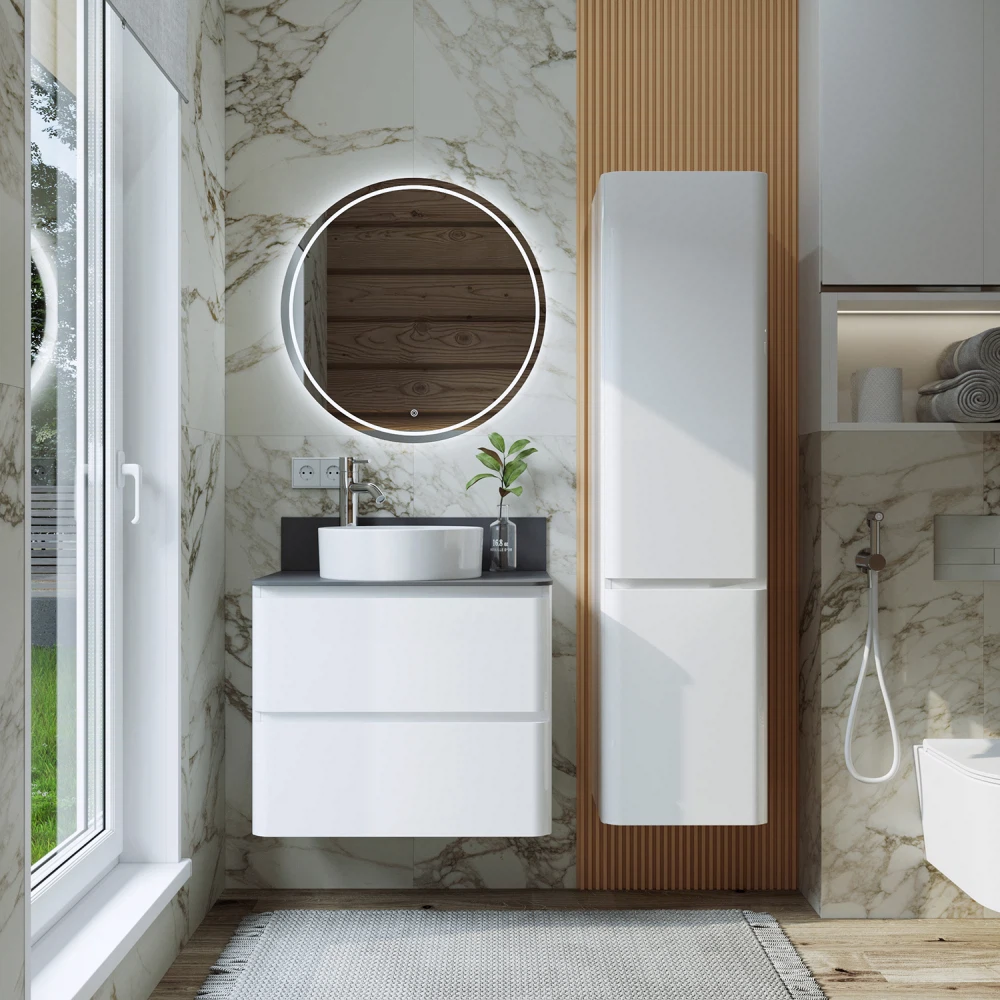 Подвесная тумба со столешницей в ванную из коллекции Roberto - это сочетание современной стилистики и богатого функционала. Тумба для ванны изготовлена из прочного МДФ, поэтому выдерживает высокие эксплуатационные нагрузки и обеспечивает дополнительную защиту тумбы со столешницей от влаги и перепадов температуры. Качественная фурнитура с доводчиками обеспечивает легкое открывание и плавное закрывание ящиков. Вырез под сифон универсальный, для любого типа. Благодаря своей конструкции тумба обеспечивает удобный доступ к раковине и позволяет скрыть коммуникации. Тумба со столешницей в ванную оснащена удобным ящиком для хранения, что позволяет разместить всё необходимое под рукой. Ручки интегрированы в фасад, что исключает возможность случайного удара о фурнитуру. Для точного выбора тумбы со столешницей в ванную комнату рекомендуем обратиться к схеме замеров, которая находится на фото в карточке товара, размеры изделия могут отличаться +/-1 см в связи со спецификой производства. Тумба для ванной доставляется в предварительно собранном виде, надежно упакована.