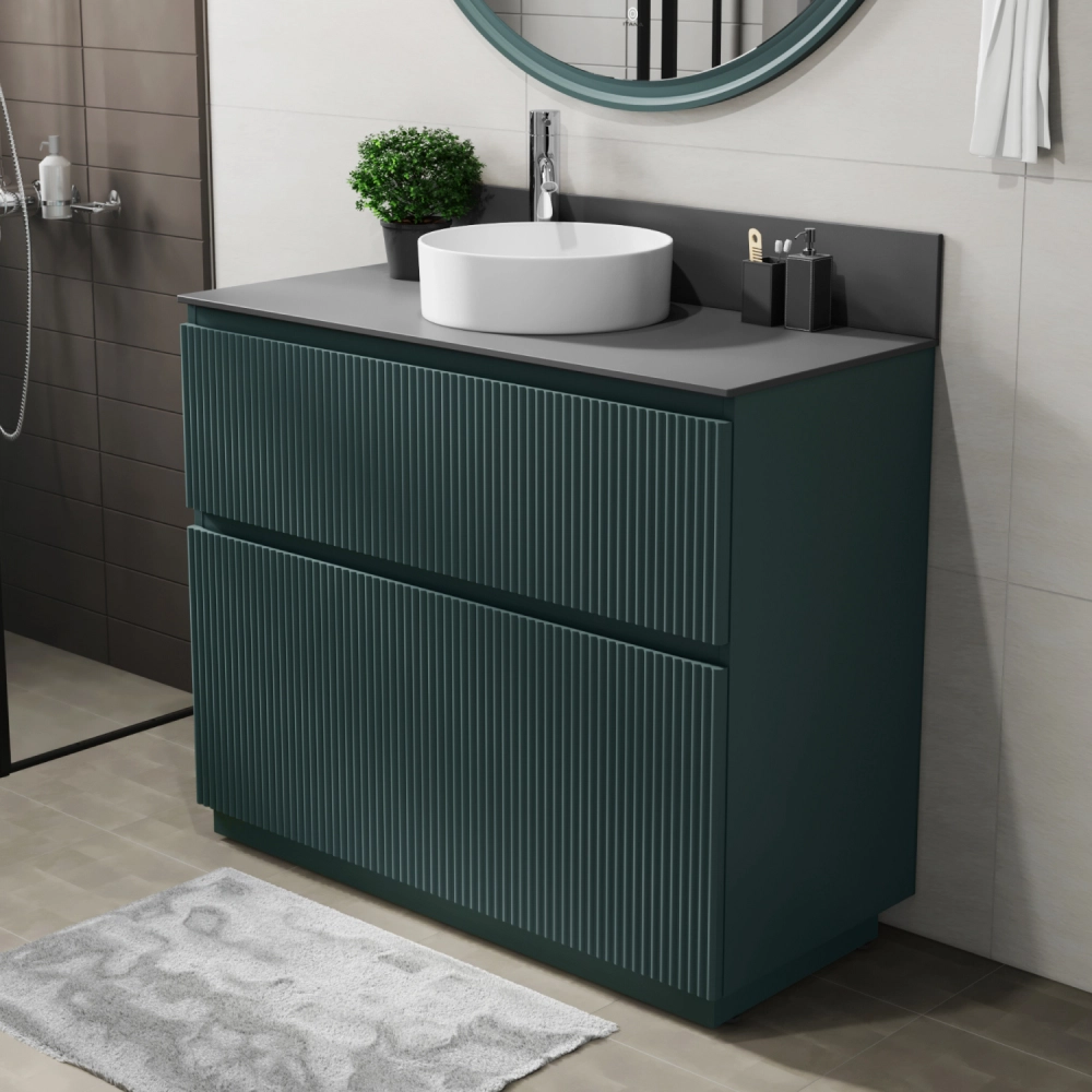 Тумба со столешницей напольная Итана Kate 100 с выдвижными ящиками Веллюто Авокадо