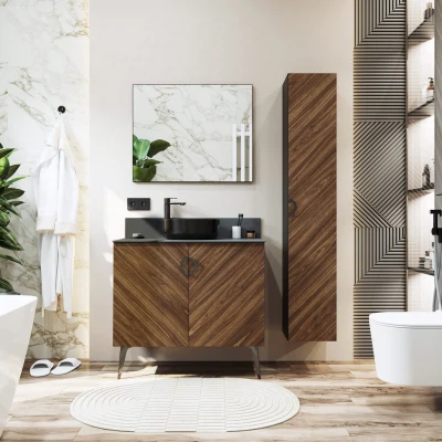 Напольная тумба со столешницей из коллекции Palladio выполнена в модных декорах. Технология производства позволила сделать элементы мебели устойчивыми к влаге. Качественная фурнитура с доводчиками обеспечивает легкое открывание и плавное закрывание дверей. Дизайнерские металлические ручки с покрытием не только декоративный элемент, но и удобное решение - фасады остаются чистыми при постоянном открывании и закрывании. Вырез под сифон универсальный, для любого типа. Тумба со столешницей в ванную оснащена удобным шкафчиком для хранения, что позволяет разместить всё необходимое под рукой. Для точного выбора напольной тумбы со столешницей в ванную комнату рекомендуем обратиться к схеме замеров, которая находится на фото в карточке товара, размеры изделия могут отличаться +/-1 см в связи со спецификой производства.
