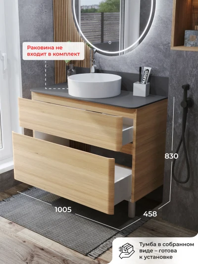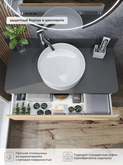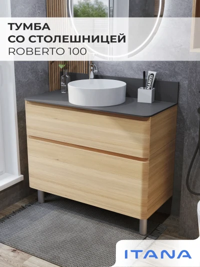 КаталогТумбы со столешницейТумба со столешницей напольная Итана Roberto 100 с выдвижными ящиками Дуб Мавелла Голд