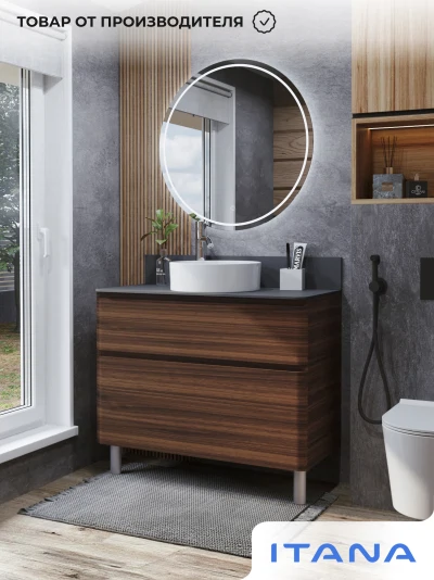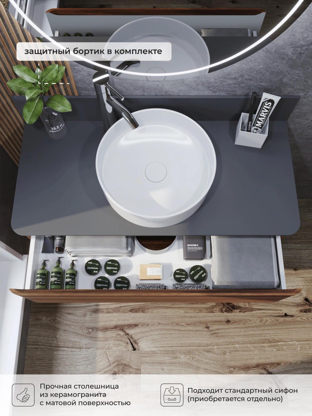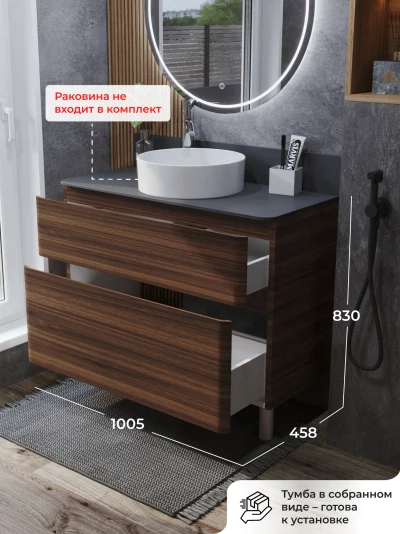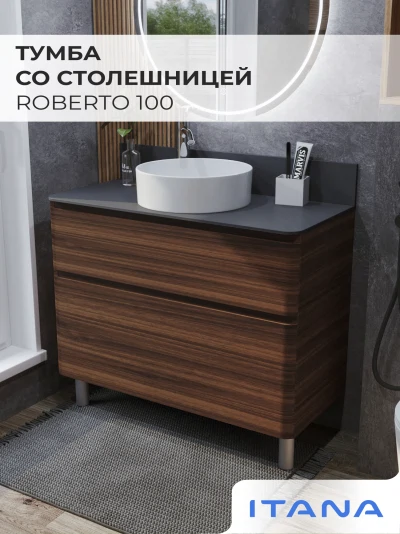 КаталогТумбы со столешницейТумба со столешницей напольная Итана Roberto 100 с выдвижными ящиками Орех Пекан Шоколад Стронг