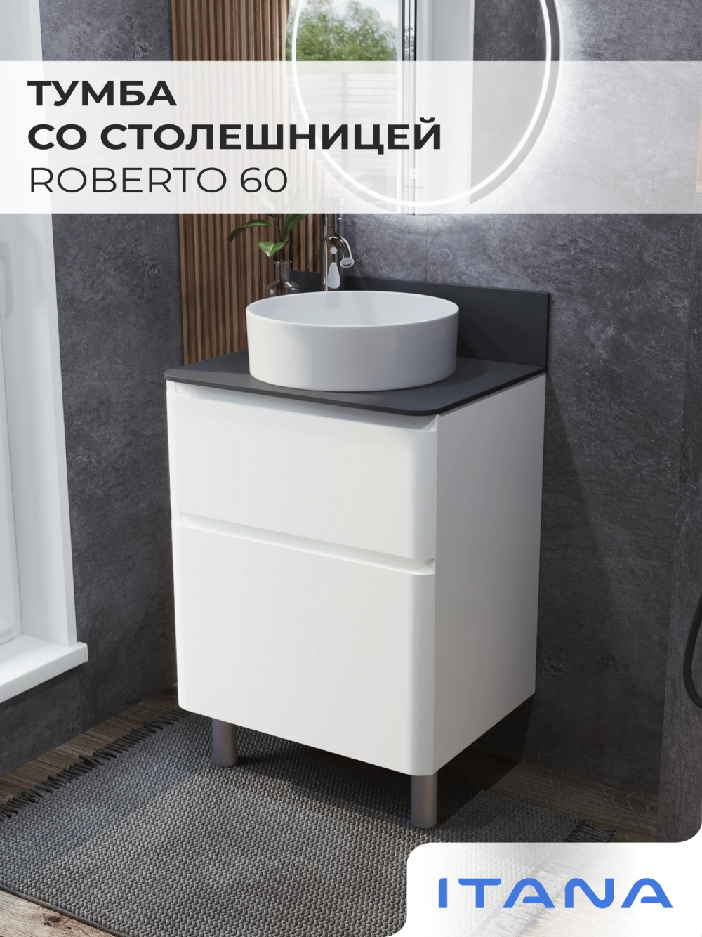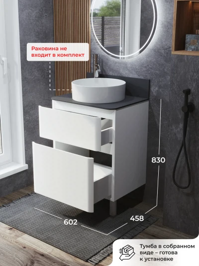 КаталогТумбы со столешницейТумба со столешницей напольная Итана Roberto 60 с выдвижными ящиками Белый Глянец