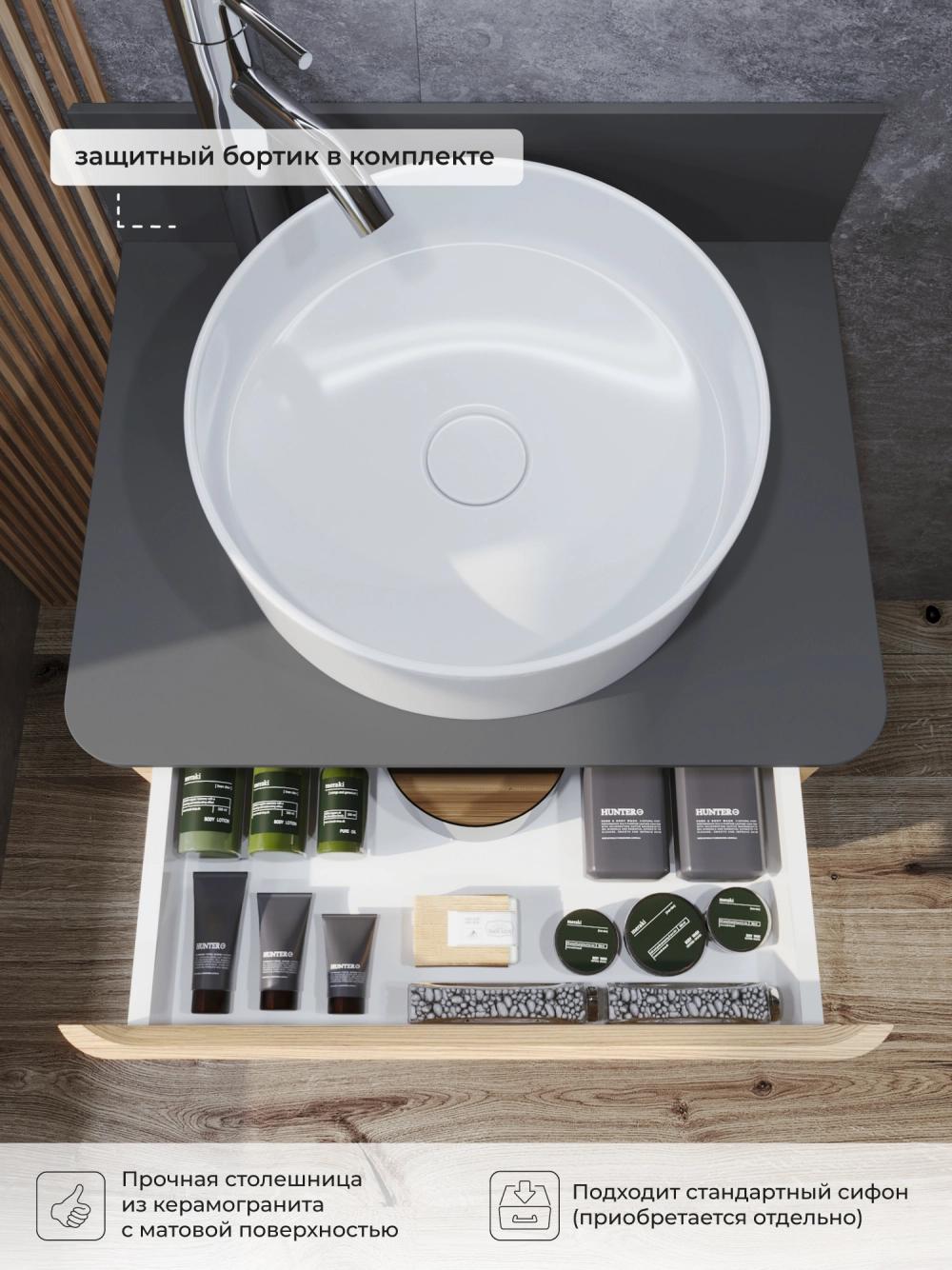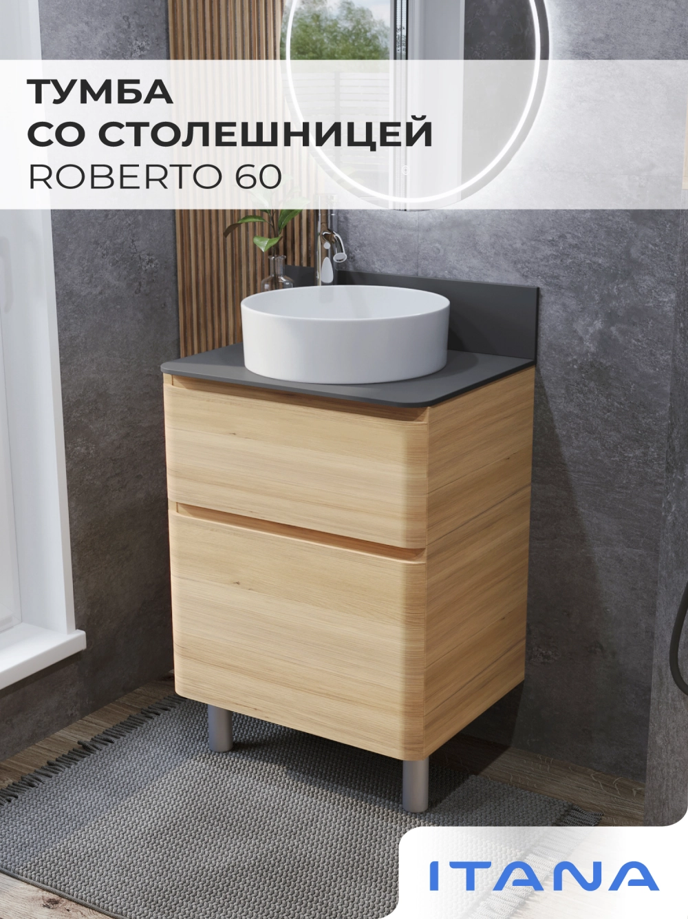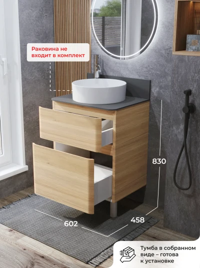 КаталогТумбы со столешницейТумба со столешницей напольная Итана Roberto 60 с выдвижными ящиками Дуб Мавелла Голд