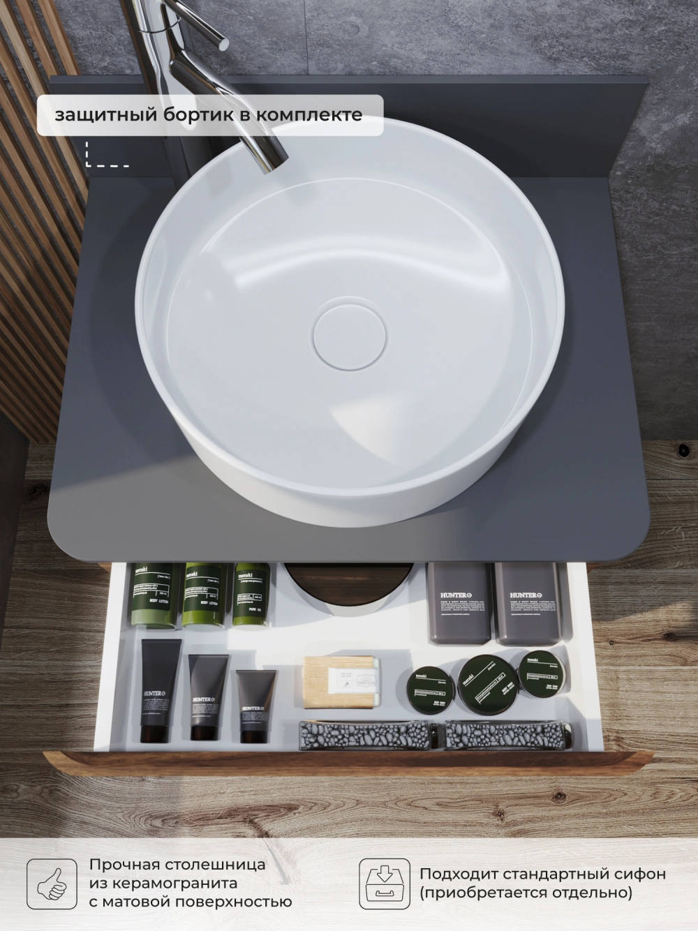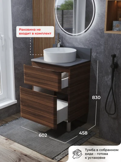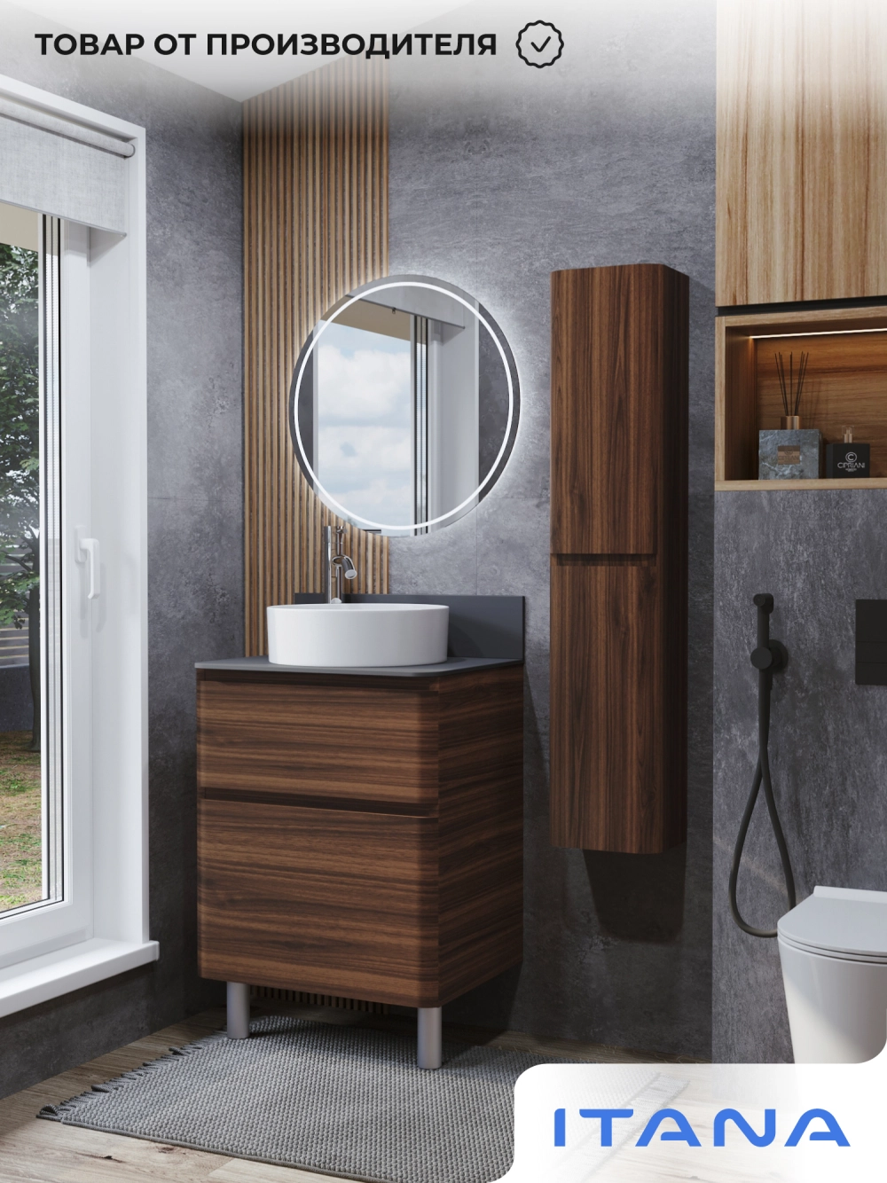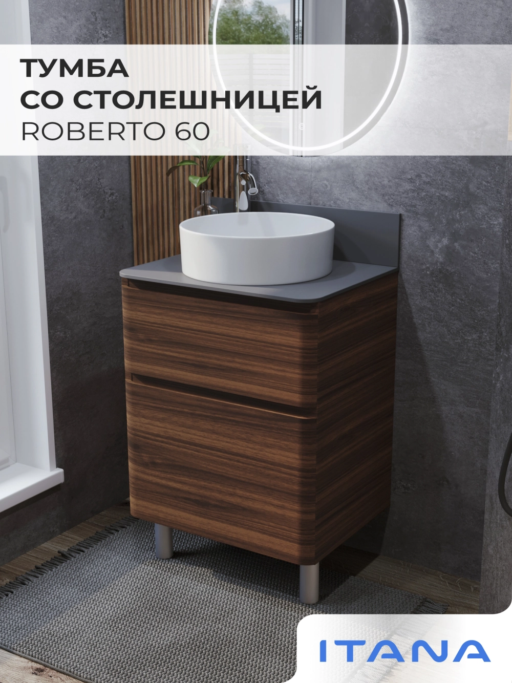 КаталогТумбы со столешницейТумба со столешницей напольная Итана Roberto 60 с выдвижными ящиками Орех Пекан Шоколад Стронг
