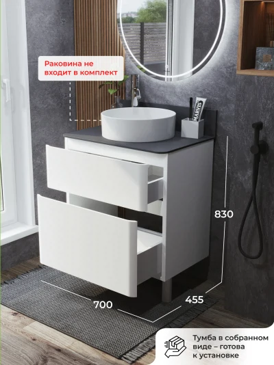 Тумба со столешницей напольная Итана Roberto 70 с выдвижными ящиками Эмаль Белый Глянец