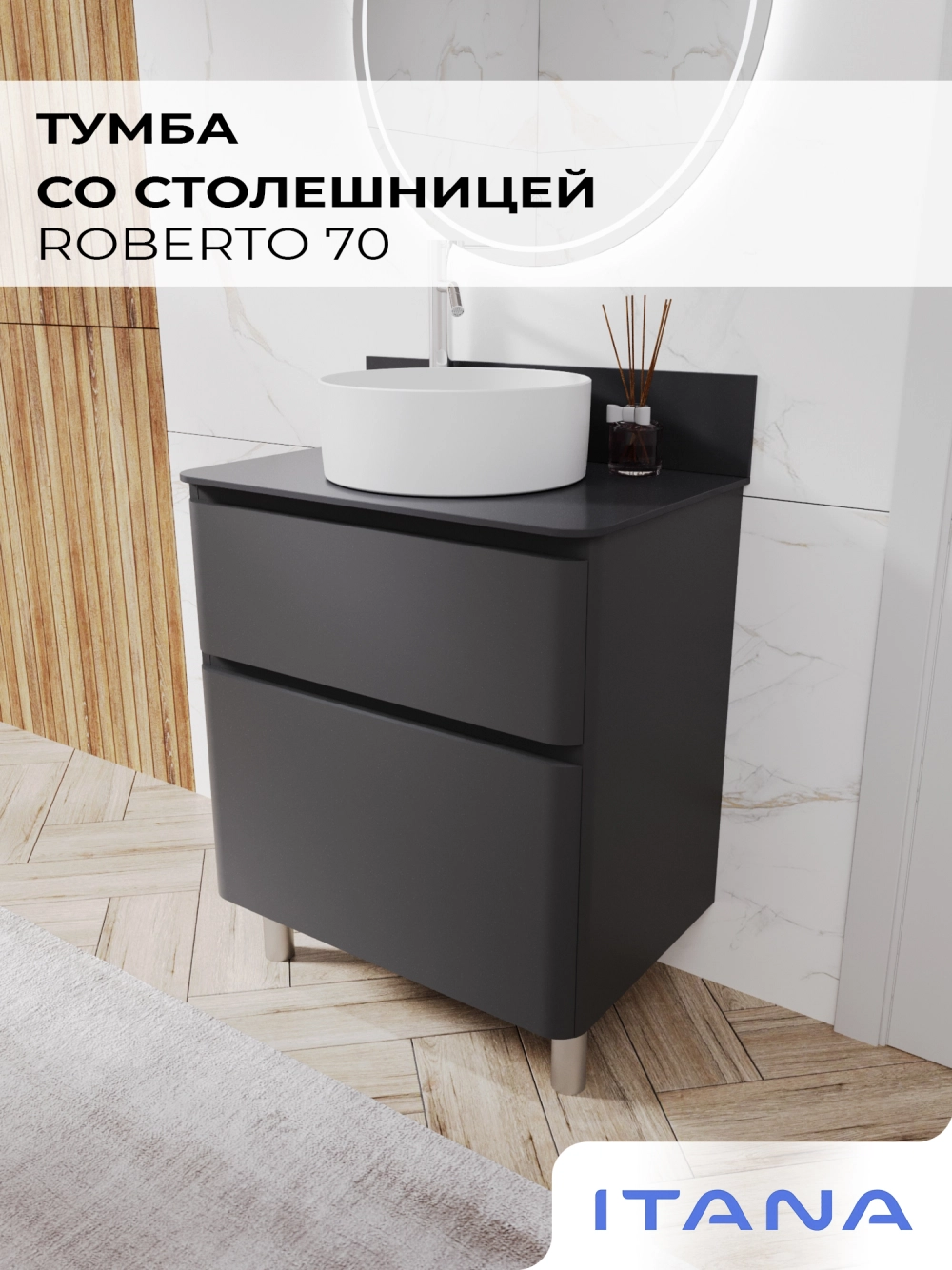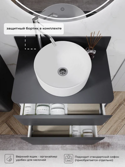 Тумба со столешницей напольная Итана Roberto 70 с выдвижными ящиками Графит