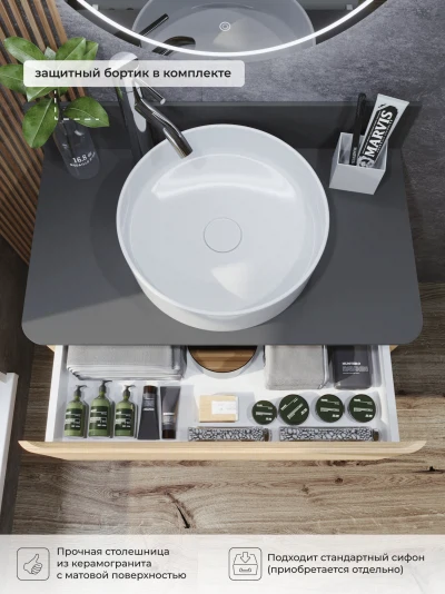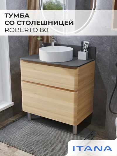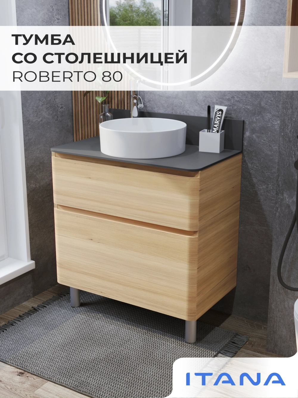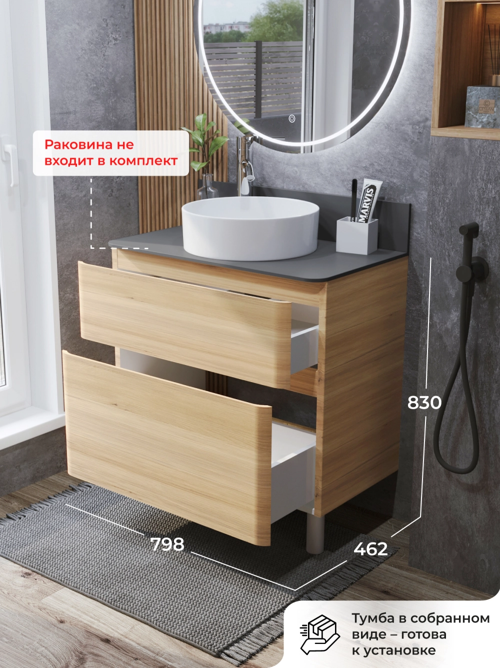 КаталогТумбы со столешницейТумба со столешницей напольная Итана Roberto 80 с выдвижными ящиками Дуб Мавелла Голд