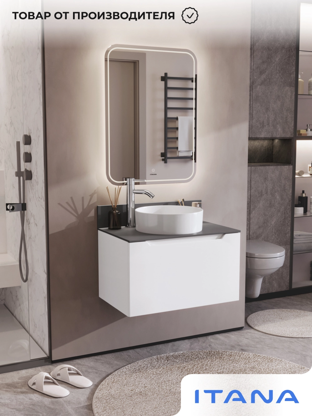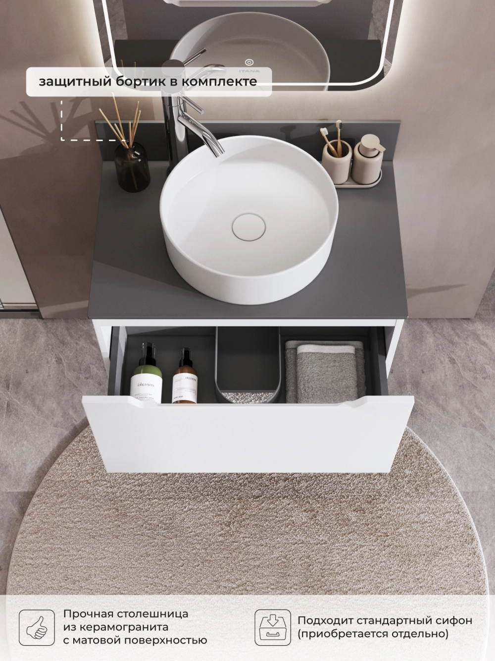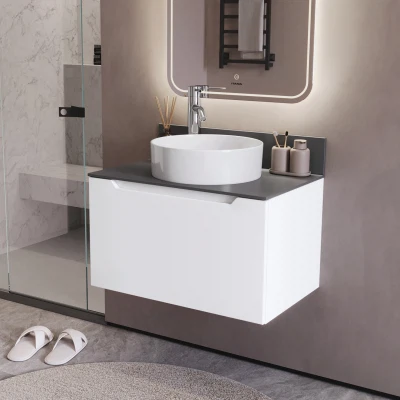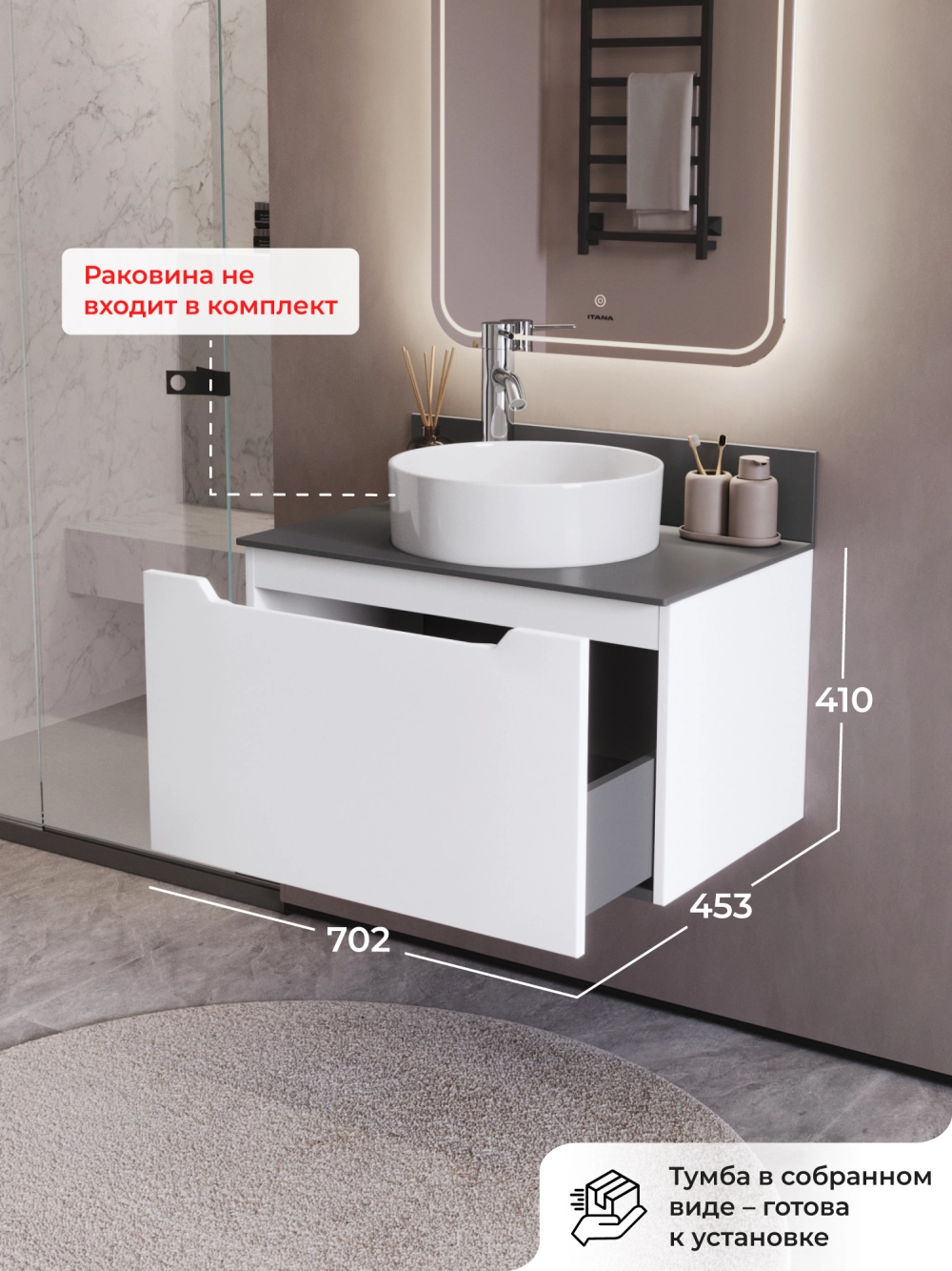 Тумба со столешницей подвесная Итана Alara 70 с выдвижным ящиком Белый глянец