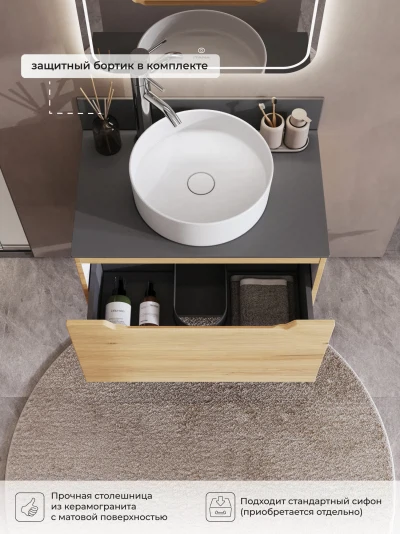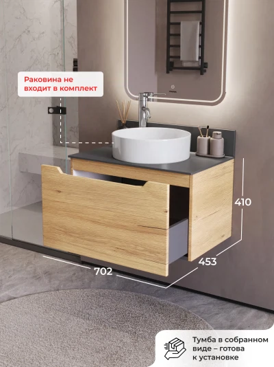 Тумба со столешницей подвесная Итана Alara 70 с выдвижным ящиком Дуб Мавелла Голд
