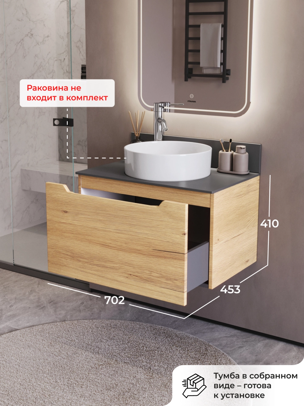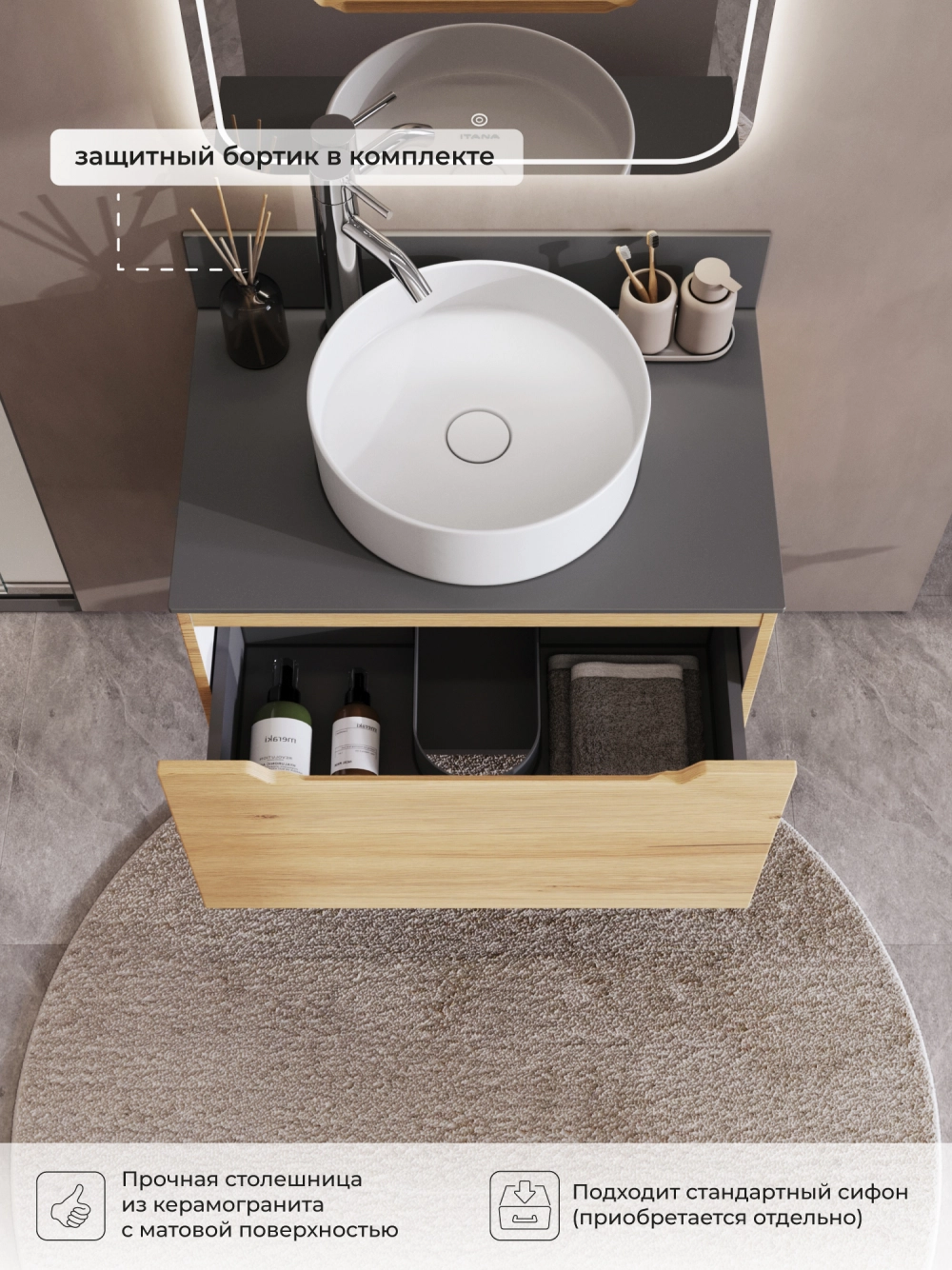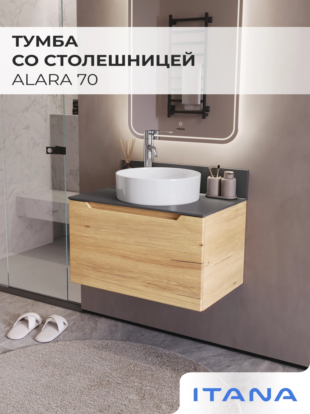 Представляем вашему вниманию стильную подвесную тумбу со столешницей Итана Alara, выполненную в цвете Дуб Мавелла Голд. Этот аксессуар для ванной комнаты идеально сочетает в себе функциональность и современный дизайн. Размеры тумбы обеспечивают достаточное пространство для хранения необходимых предметов.<br>Благодаря своему лаконичному и компактному дизайну, этот элемент мебели не только делает пространство более стильным, но и помогает эффективно организовать хранение. Она станет отличным решением для тех, кто ценит минимализм и удобство. Подвесная тумба обеспечивает легкость уборки под ней и визуально увеличивает пространство. Изготавливается из качественных материалов, что гарантирует долговечность и износостойкость. Конструкция предполагает простоту монтажа и эксплуатации. Тумба обязательно дополнит вашу ванную, сделает её более уютной и функциональной.
