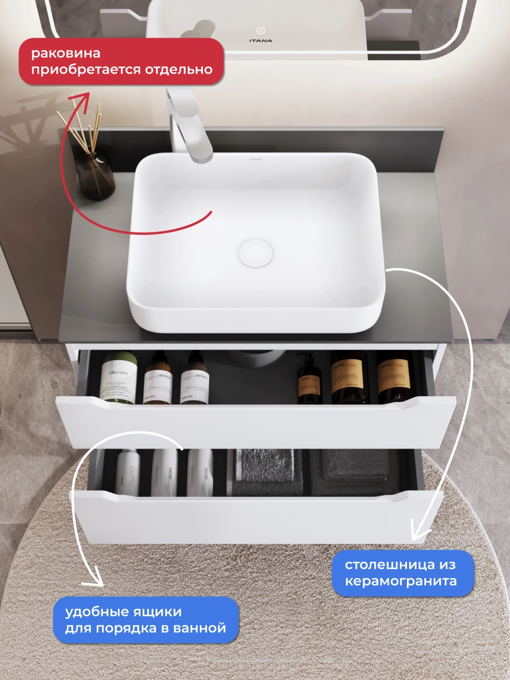 Представляем вашему вниманию стильную подвесную тумбу со столешницей Итана Alara, выполненную в элегантном белом цвете. Этот аксессуар для ванной комнаты идеально сочетает в себе функциональность и современный дизайн. Размеры тумбы обеспечивают достаточное пространство для хранения необходимых предметов.<br>Благодаря своему лаконичному и компактному дизайну, этот элемент мебели не только делает пространство более стильным, но и помогает эффективно организовать хранение. Она станет отличным решением для тех, кто ценит минимализм и удобство. Подвесная тумба обеспечивает легкость уборки под ней и визуально увеличивает пространство. Изготавливается из качественных материалов, что гарантирует долговечность и износостойкость. Конструкция предполагает простоту монтажа и эксплуатации. Тумба обязательно дополнит вашу ванную, сделает её более уютной и функциональной.