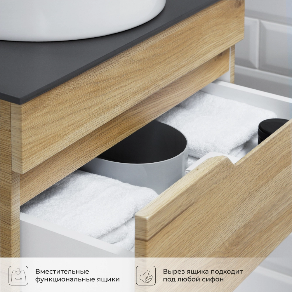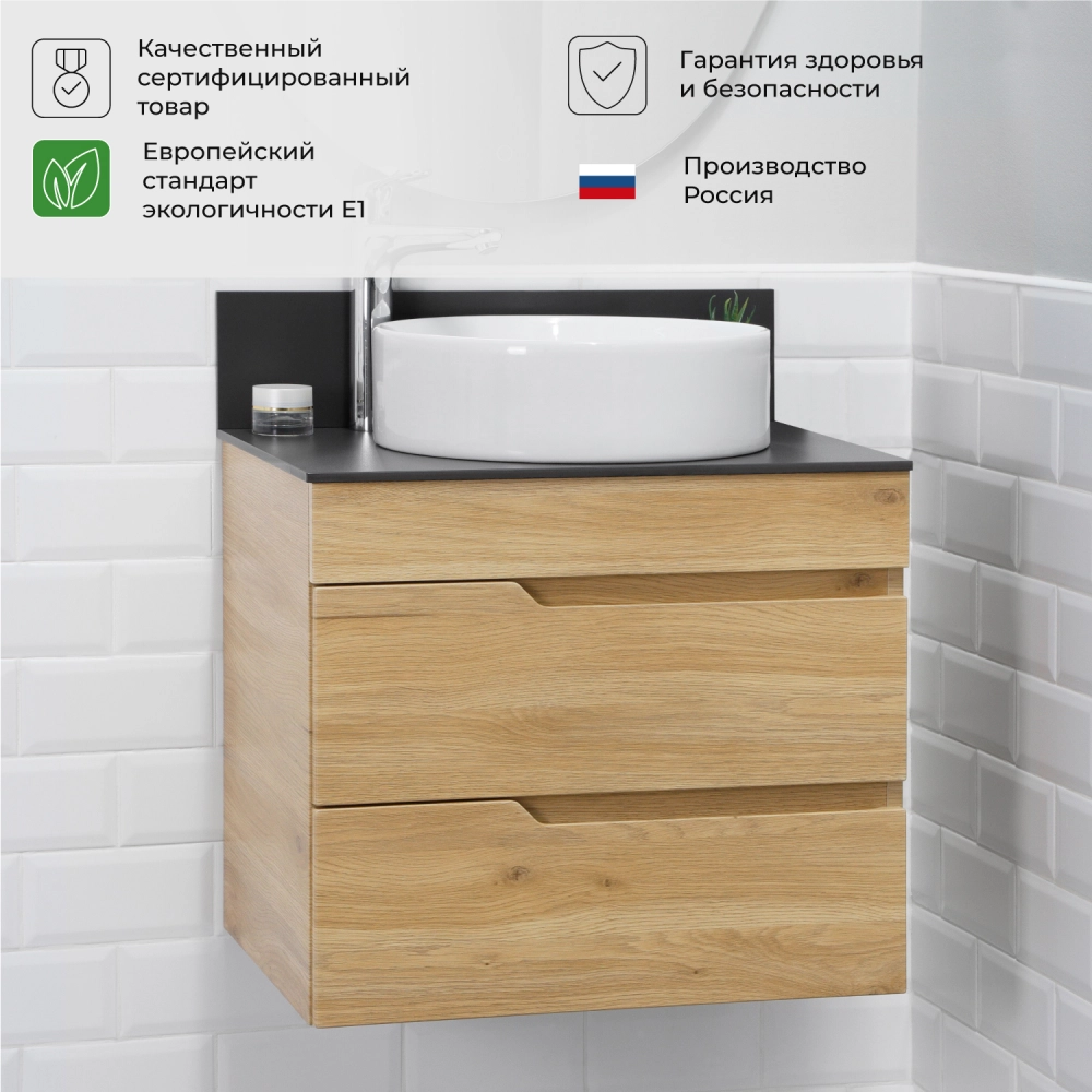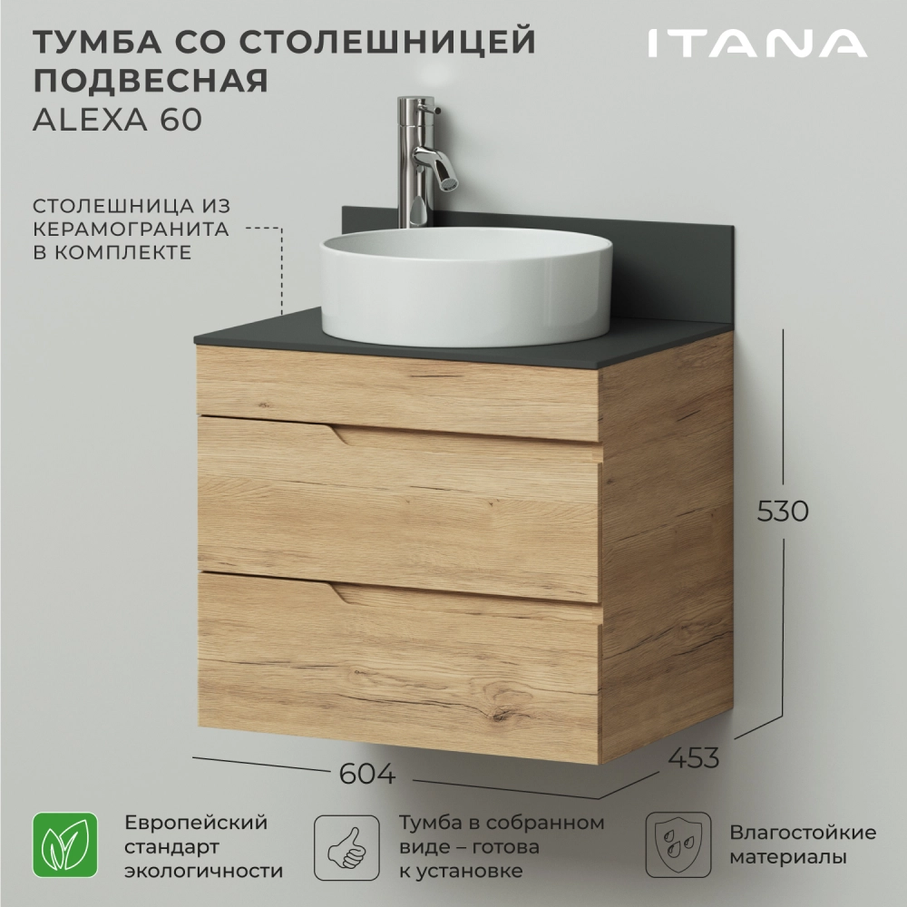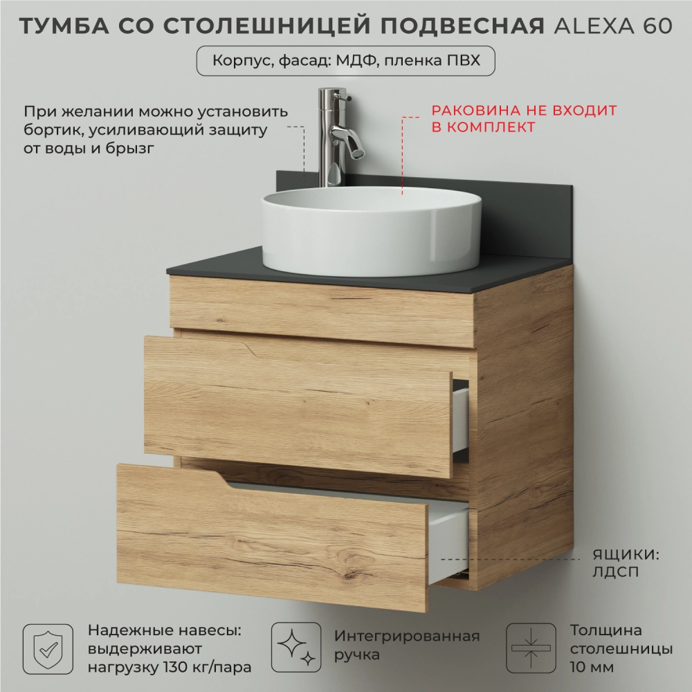 Тумба со столешницей подвесная Итана Alexa 60 с выдвижными ящиками Дуб Мавелла Голд
