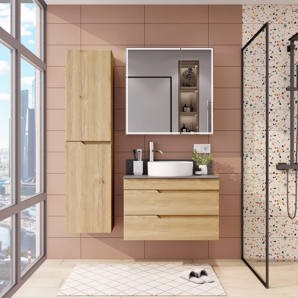 Тумба со столешницей подвесная Итана Alexa 80 с выдвижными ящиками Дуб Мавелла Голд