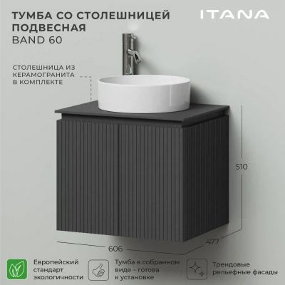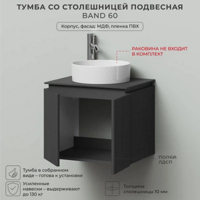 Тумба со столешницей подвесная Итана BAND 60 с распашными дверцами Графит