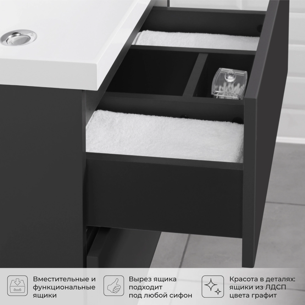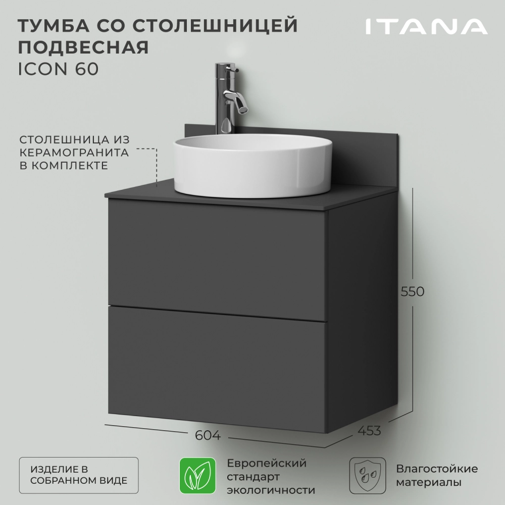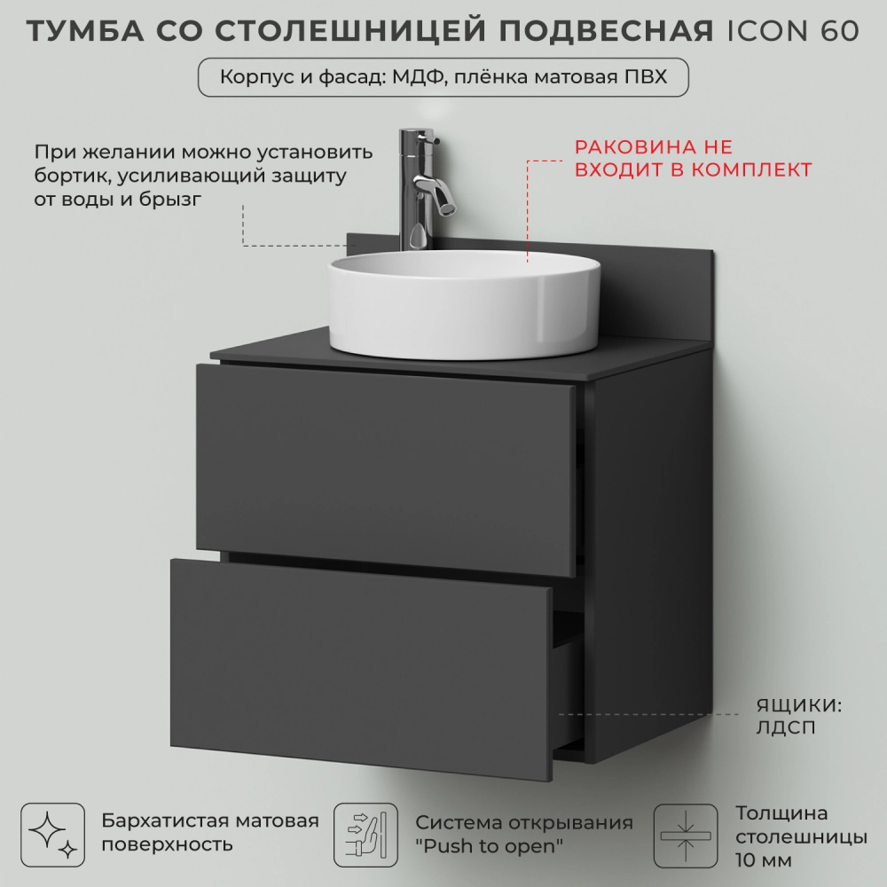 Тумба со столешницей подвесная Итана Icon 60 с выдвижными ящиками Графит