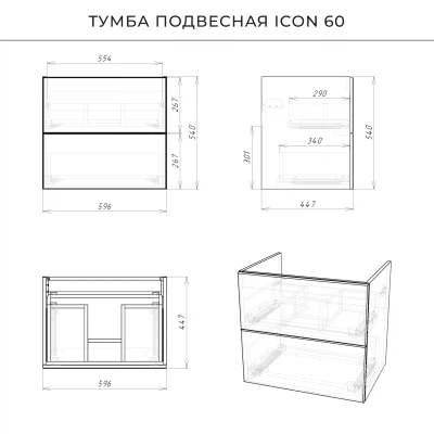 Подвесная тумба со столешницей в ванную комнату из коллекции Icon - это сочетание современной стилистики и богатого функционала. Навесной способ установки тумбы в ванную дает возможность не только визуально увеличить пространство, но и обеспечивает быстрый и удобный доступ для уборки. Размеры подвесной тумбы со столешницей 604х453х550 - идеальный выбор для ванной комнаты или туалета. Качественная фурнитура с доводчиками обеспечивает легкое открывание и плавное закрывание ящиков. Тумба со столешницей с двумя ящиками, где можно рационально распределить и разместить все необходимые вещи для ванной комнаты. Вырез под сифон универсальный, для любого типа сифона. Для точного выбора тумбы со столешницей в ванную комнату рекомендуем обратиться к схеме замеров, которая находится на фото в карточке товара, размеры изделия могут отличаться +/-1 см в связи со спецификой производства. Тумба со столешницей для ванной доставляется в предварительно собранном виде, надежно упакована.