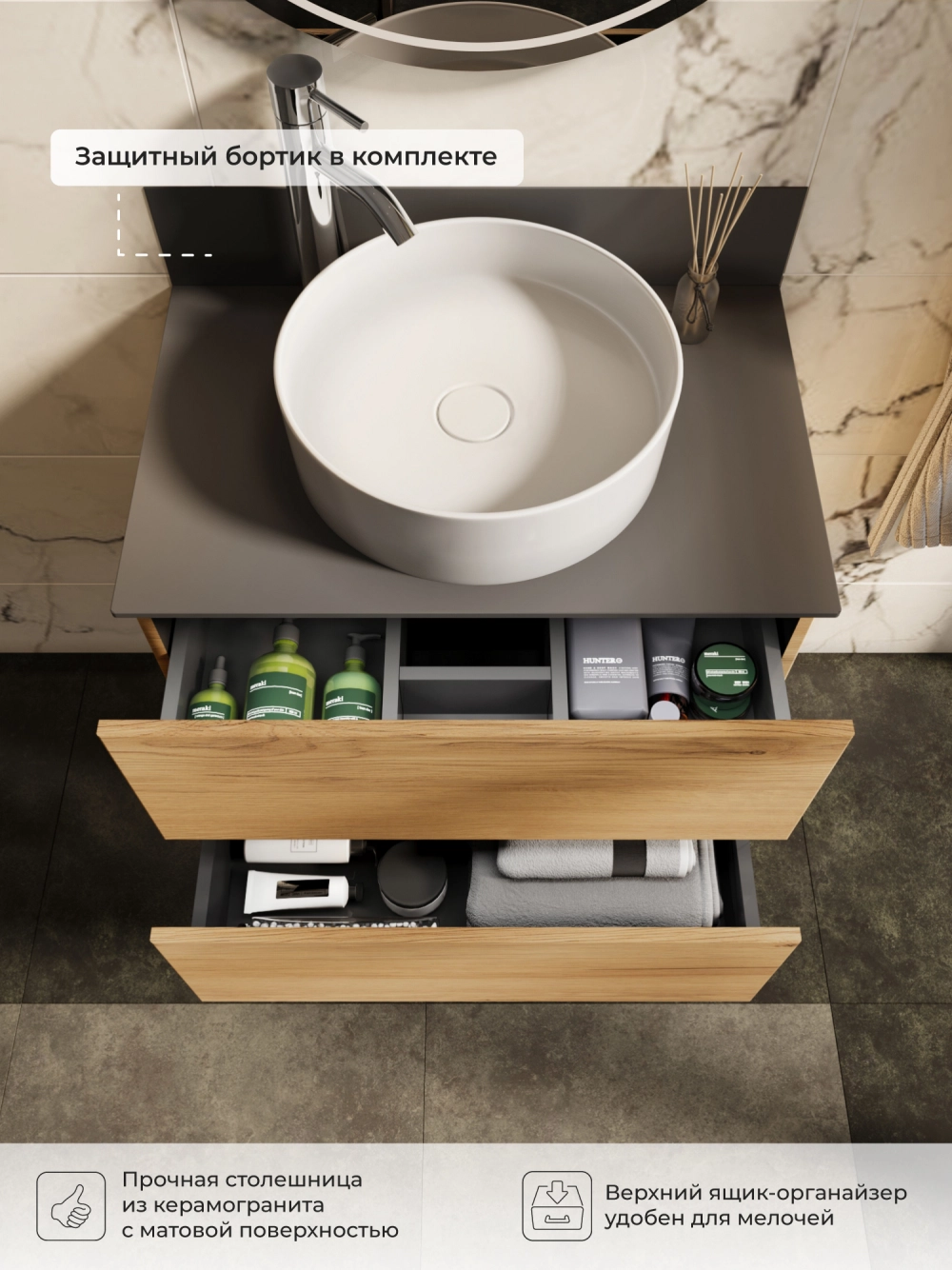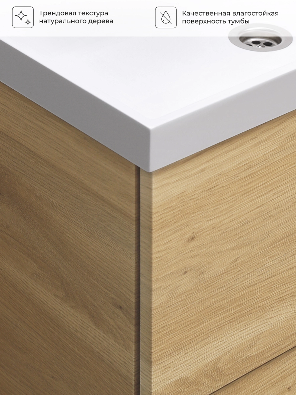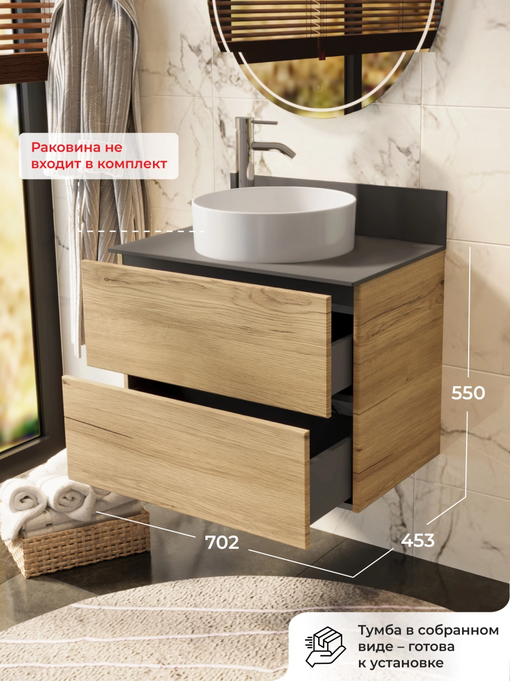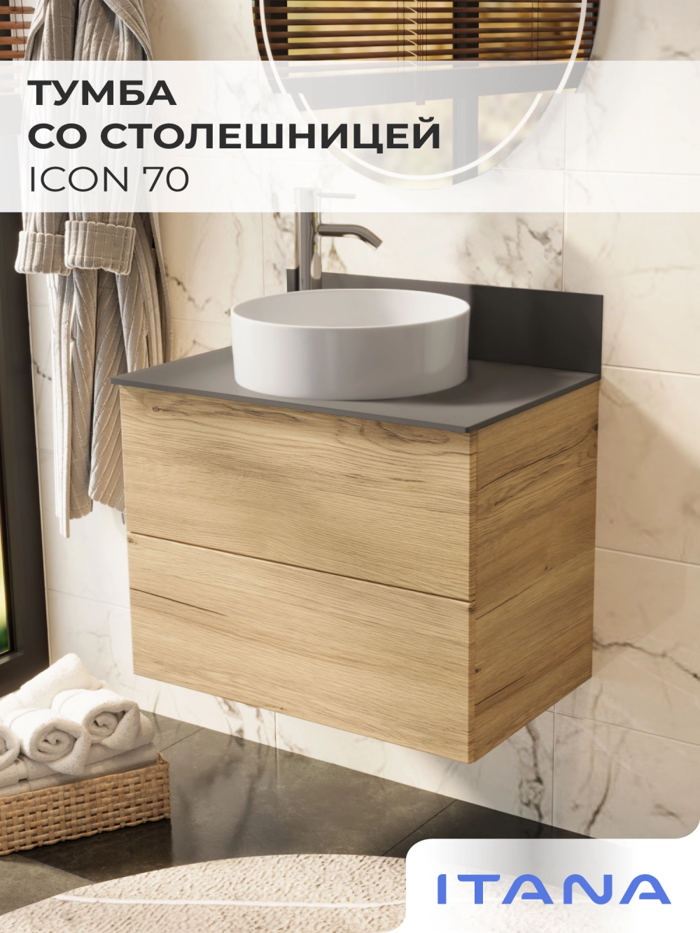 Тумба со столешницей подвесная Итана Icon 70 с выдвижными ящиками Дуб Мавелла Голд