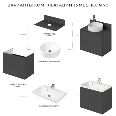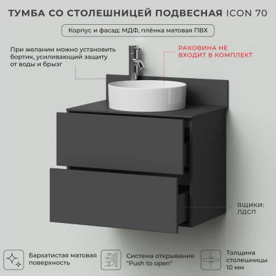 Тумба со столешницей подвесная Итана Icon 70 с выдвижными ящиками Графит