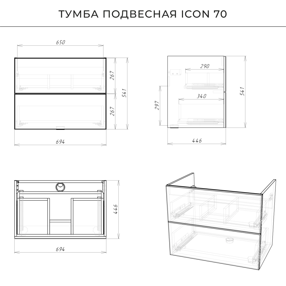 Подвесная тумба со столешницей в ванную комнату из коллекции Icon - это сочетание современной стилистики и богатого функционала. Навесной способ установки тумбы в ванную дает возможность не только визуально увеличить пространство, но и обеспечивает быстрый и удобный доступ для уборки. Размеры подвесной тумбы со столешницей 702х453х551 - идеальный выбор для ванной комнаты или туалета. Качественная фурнитура с доводчиками обеспечивает легкое открывание и плавное закрывание ящиков. Тумба со столешницей с двумя ящиками, где можно рационально распределить и разместить все необходимые вещи для ванной комнаты. Вырез под сифон универсальный, для любого типа сифона. Для точного выбора тумбы со столешницей в ванную комнату рекомендуем обратиться к схеме замеров, которая находится на фото в карточке товара, размеры изделия могут отличаться +/-1 см в связи со спецификой производства. Подвесная тумба со столешницей для ванной доставляется в предварительно собранном виде, надежно упакована.