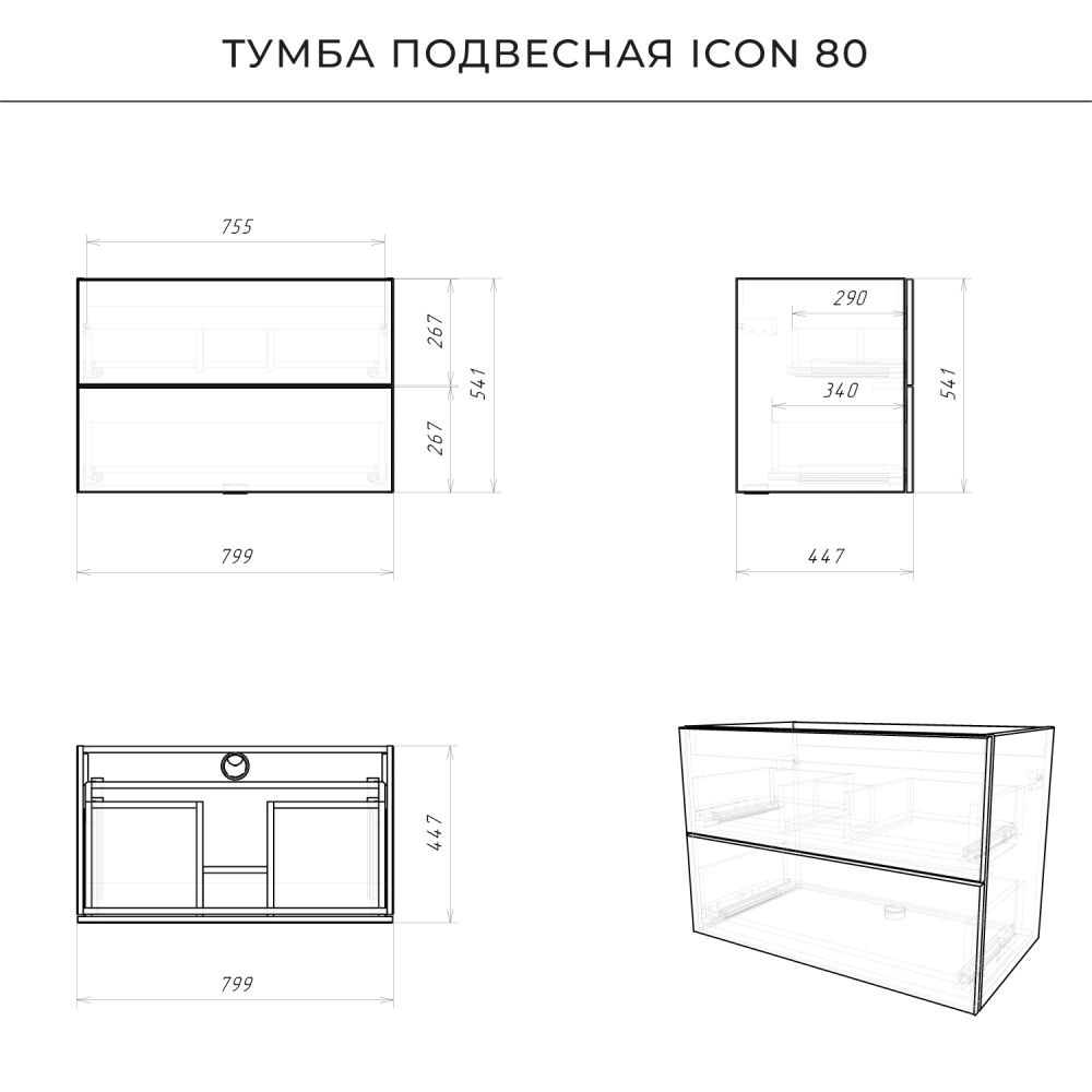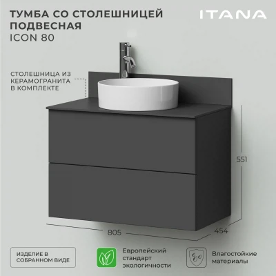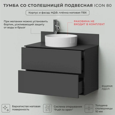 Тумба со столешницей подвесная Итана Icon 80 с выдвижными ящиками Графит