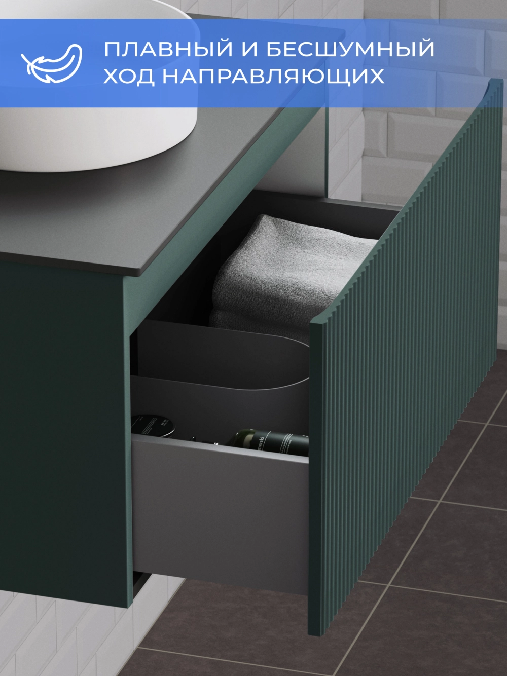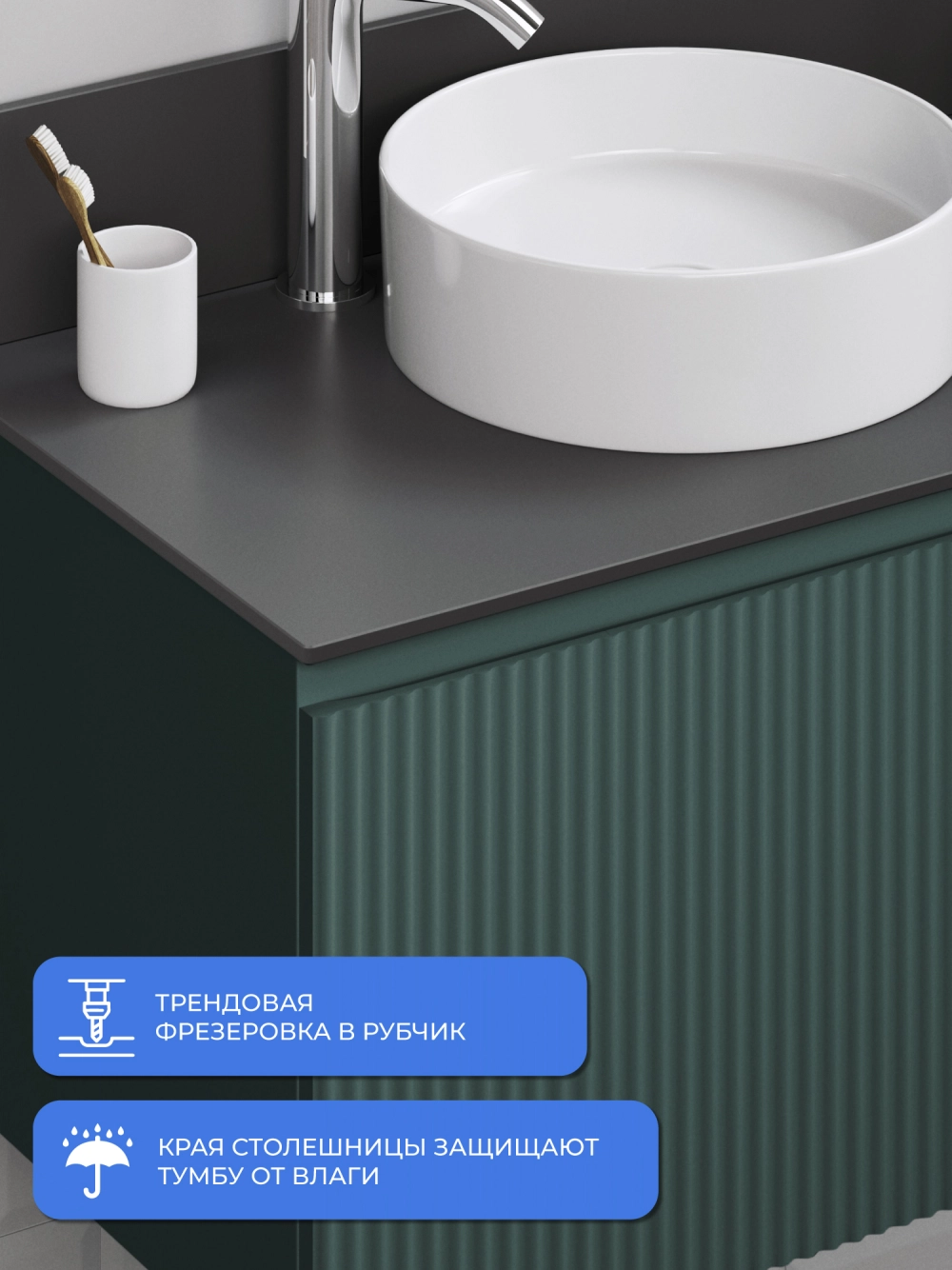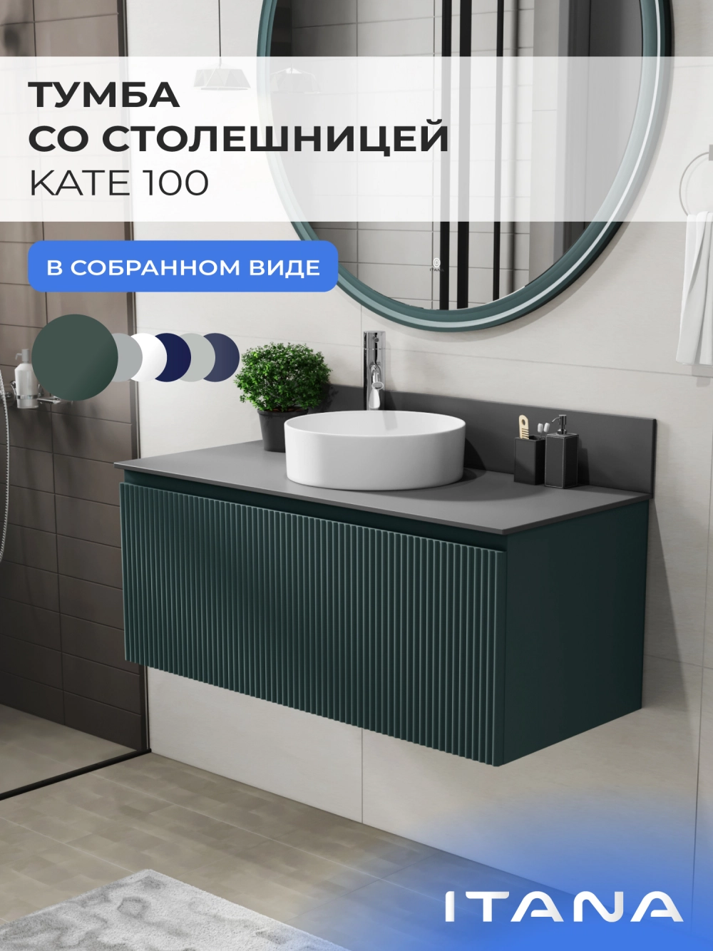 Подвесная тумба со столешницей Итана Kate 100 станет идеальным дополнением для вашей ванной комнаты, сочетая в себе стильный дизайн и функциональность. Коллекция Kate - воплотила в себе тренд на фактурные фасады. Идеальный "рубчик" - простое и стильное дизайнерское решение для декорирования фасадов - эта мебель бесспорно станет украшением современной ванной комнаты. Элегантная подвесная конструкция позволяет максимально эффективно использовать пространство, создавая ощущение легкости и визуальной свободы в интерьере. Благодаря компактным габаритам тумба идеально подходит даже для небольших ванных комнат, при этом предоставляя достаточно места для хранения необходимых принадлежностей. Тумба изготовлена из высококачественных материалов, гарантируя долговечность и надежность эксплуатации. Удобные фрезерованные ручки, качественная фурнитура с доводчиками, вместительность - мы продумали все, чтобы тумба под раковину была не просто красивой, но еще и функциональной, приятной в использовании. Ее конструкция позволяет легко поддерживать порядок в ванной, ведь все мелочи будут аккуратно убраны. Столешница выполнена из керамогранита, обладая устойчивостью к механическим повреждениям и влиянию химических средств. Стильный декор тумбы со столешницей добавляет изюминку в общий дизайн, вписываясь в современные и классические интерьеры. Подвесная тумба для ванной Итана Kate 100 — это также безопасность и удобство в уборке, так как свободное пространство под ней позволяет легко очистить пол. Безупречное сочетание столешницы с тумбой подчеркивает общий стиль вашей ванной комнаты, делая ее уютной и функциональной. Для точного выбора тумбочки со столешницей в ванную комнату рекомендуем обратиться к схеме замеров, которая находится на фото в карточке товара, размеры изделия могут отличаться +/-1 см в связи со спецификой производства. Тумба для ванной доставляется в предварительно собранном виде, надежно упакована.