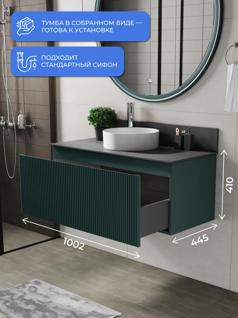 Тумба со столешницей подвесная Итана Kate 100 с выдвижным ящиком Веллюто Авокадо
