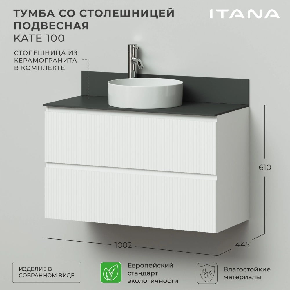 Тумба со столешницей подвесная Итана Kate 100 с выдвижными ящиками Бланж